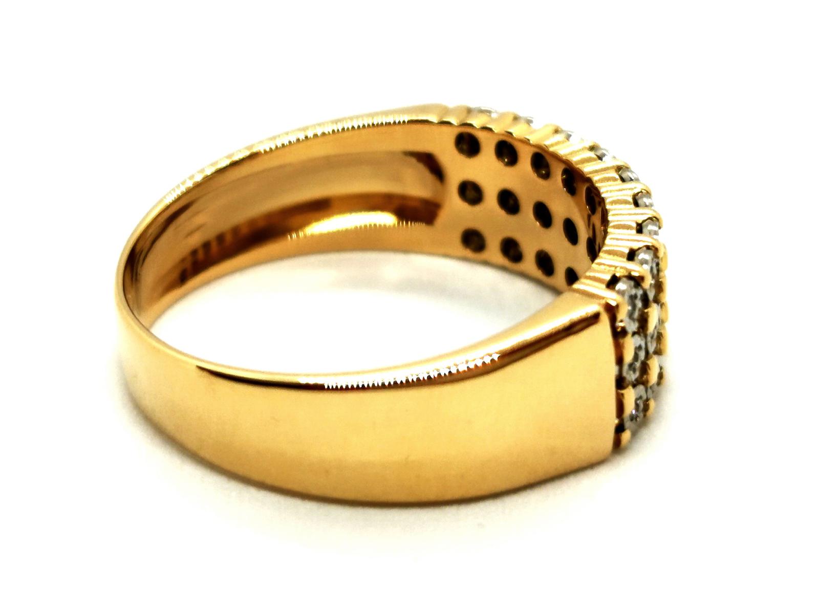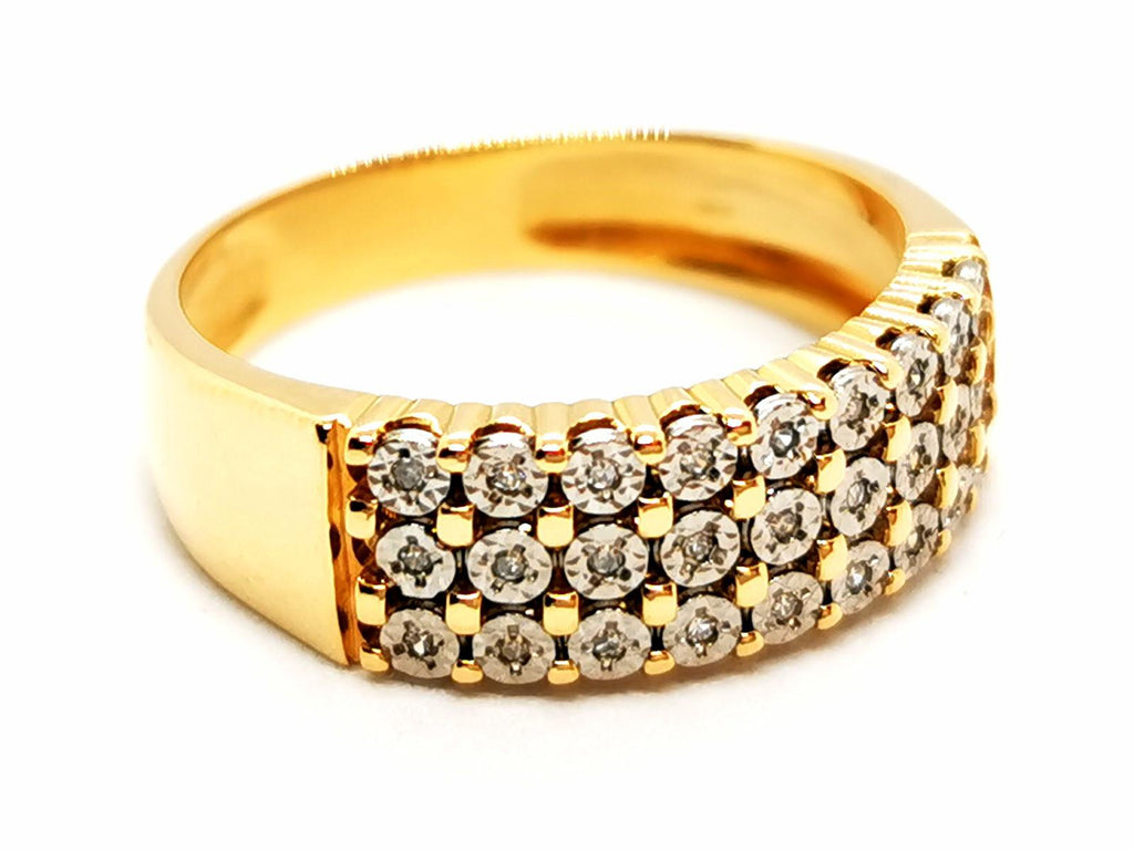 Diamond ring, in 750 thousandths (18 carat) yellow gold and white gold, smooth ring body, enhanced on the top with 3 rows of 9 brilliant diamonds, approximately 0.005ct each, set in white gold, total number of diamonds: 27, total diamond weight: approx. 0.135 ct, approx. H/VS, width on top: 0.67 cm, ring size: 60.5, total weight: 6.66 g, eagle's head hallmark, excellent condition., Visible at Marseilles