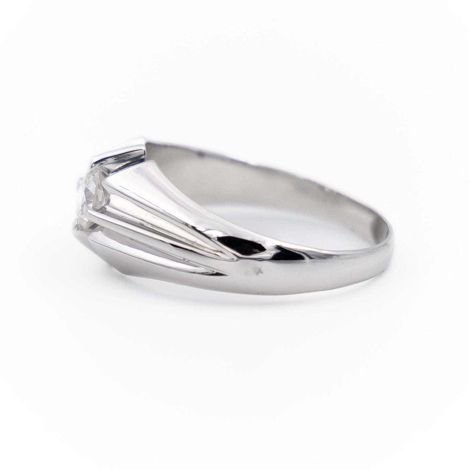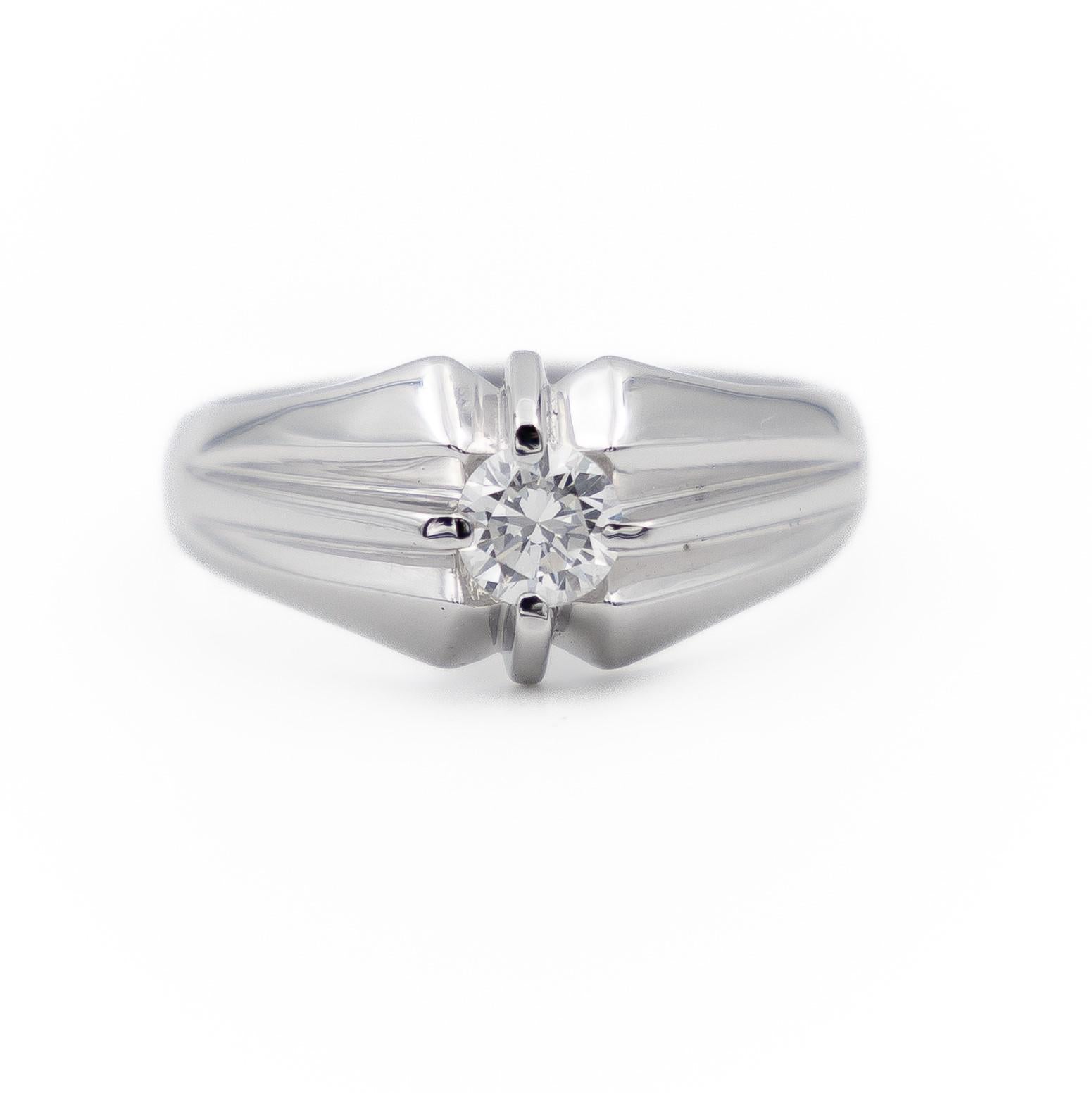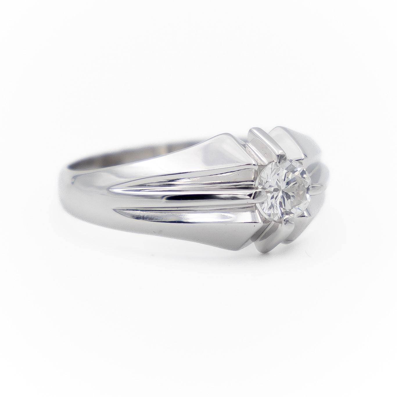 Bague solitaire en or blanc 750 millièmes (18 carats), sertie d'un diamant taille brillant, environ 0,57 ct H/SI, Tour de doigt: 63, largeur sur le dessus: 1,05 cm, Poids total: 8,18 g, Poinçon tête d'aigle, Excellent état