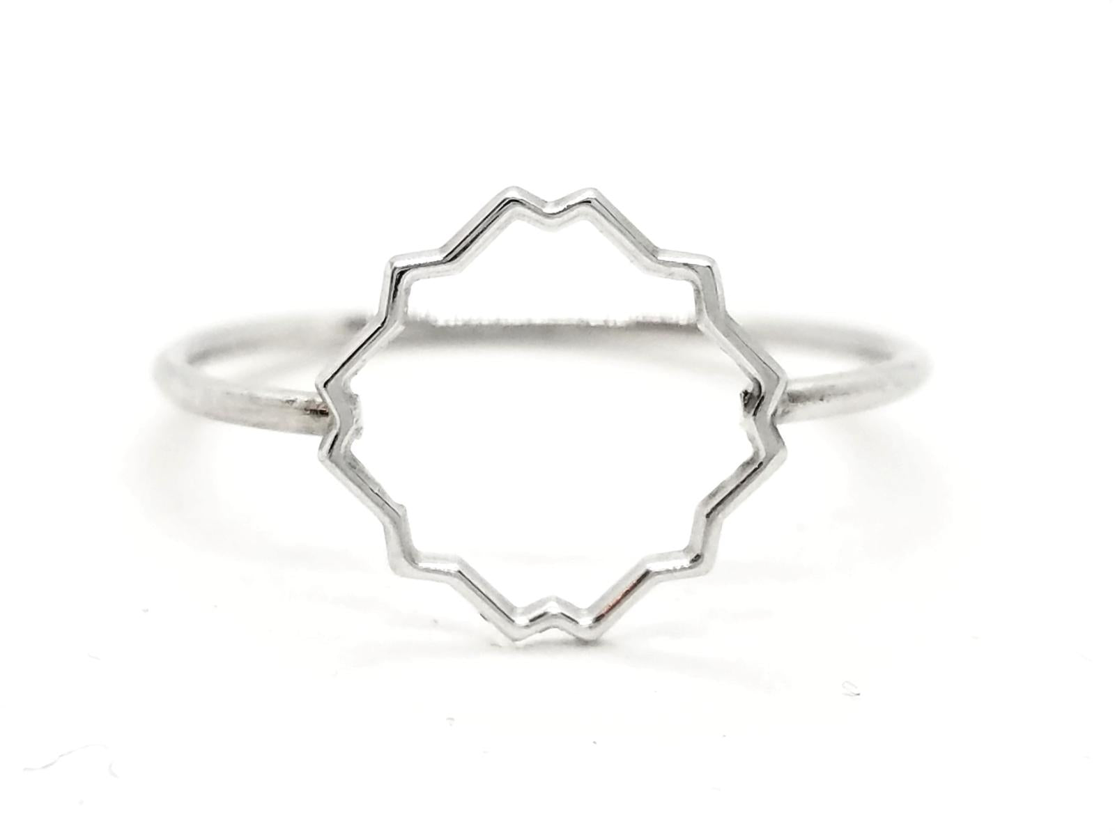 Ring in 750 thousandths (18 carat) white gold, graphic motif in transparency, ring size: 54, dimensions of the motif: 1 cm x 1 cm, width of the ring: 0.1 cm, total weight: 0.71 g , eagle's head hallmark, new condition, Internet exclusive