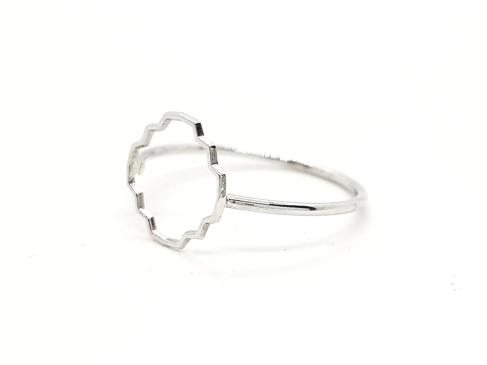 Ring in 750 thousandths (18 carat) white gold, graphic motif in transparency, ring size: 54, dimensions of the motif: 1 cm x 1 cm, width of the ring: 0.1 cm, total weight: 0.69 g , eagle's head hallmark, new condition, Visible in Nice