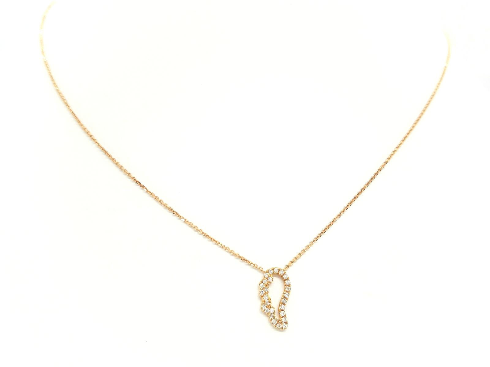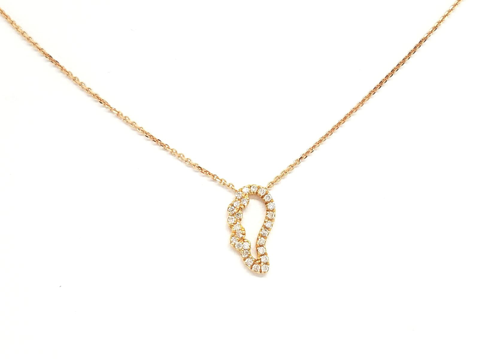 Necklace in 750 thousandths (18 carat) pink gold, angel wing pendant, paved with brilliant-cut G-VS diamonds for a total of 0.12 ct, cable chain 0.7 mm wide, chain length: 42 cm with intermediate ring at 38.5 cm, dimensions of the motif: 1.16 cm x 0.65 cm, total weight: 2.06 g, eagle's head hallmark, new condition, Internet exclusive