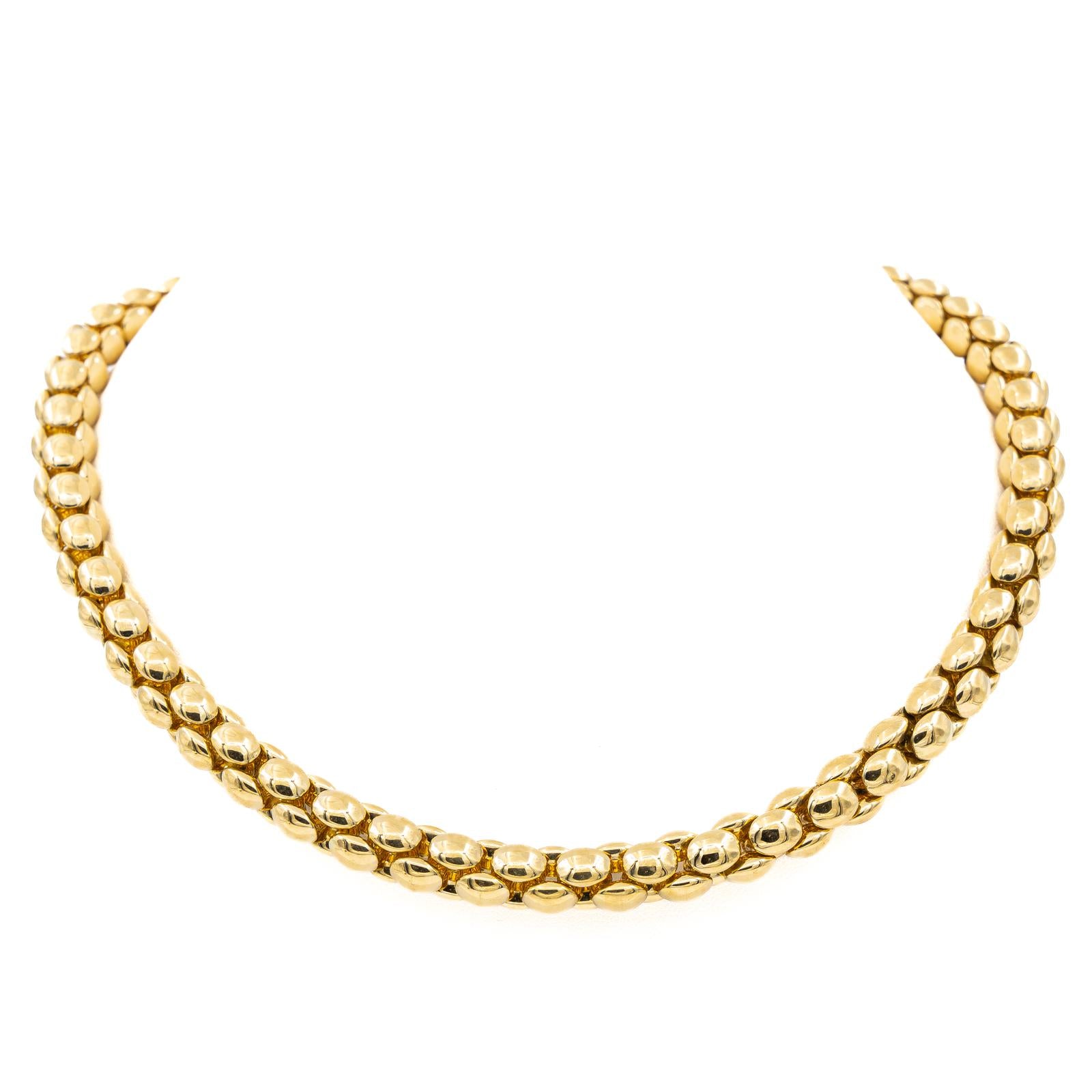 Collier en or jaune 750 millièmes (18 carats), maille souple, longueur: 43 cm, largeur: 0,9 cm, poids total: 73,57 g, poinçon tête d’aigle, excellent état