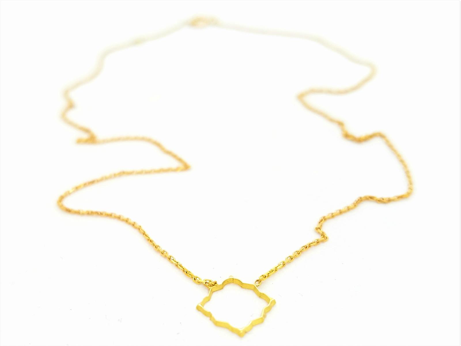 Necklace in 750 thousandths (18 carat) yellow gold, transparent graphic pattern on a cable chain, dimensions of the pattern: 1 cm x 1 cm, chain width: 0.7 mm, necklace length: 40 cm with intermediate ring at 38 cm, total weight: 1.37 g, eagle's head hallmark, new condition, Internet exclusive