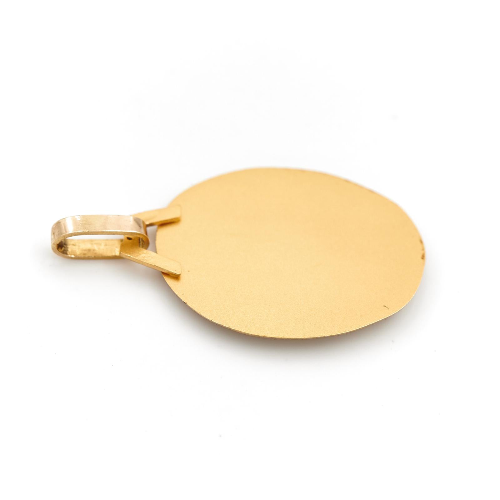 Médaille religieuse ovale de Saint Christophe en or jaune 750 millièmes (18 carats), hauteur: 2,46 cm, largeur: 1,43 cm, poids total: 2,23 g, poinçon tête d'aigle, excellent état