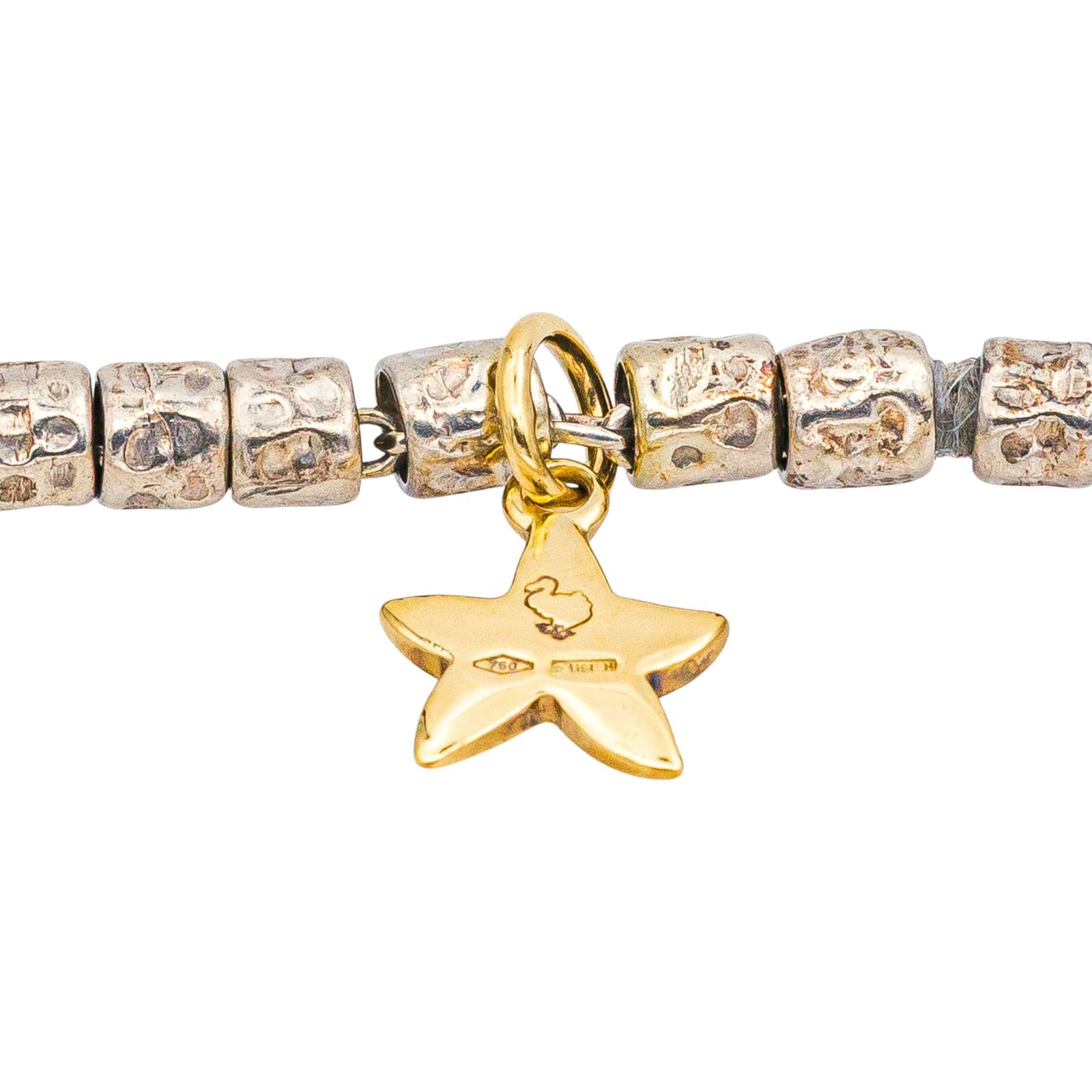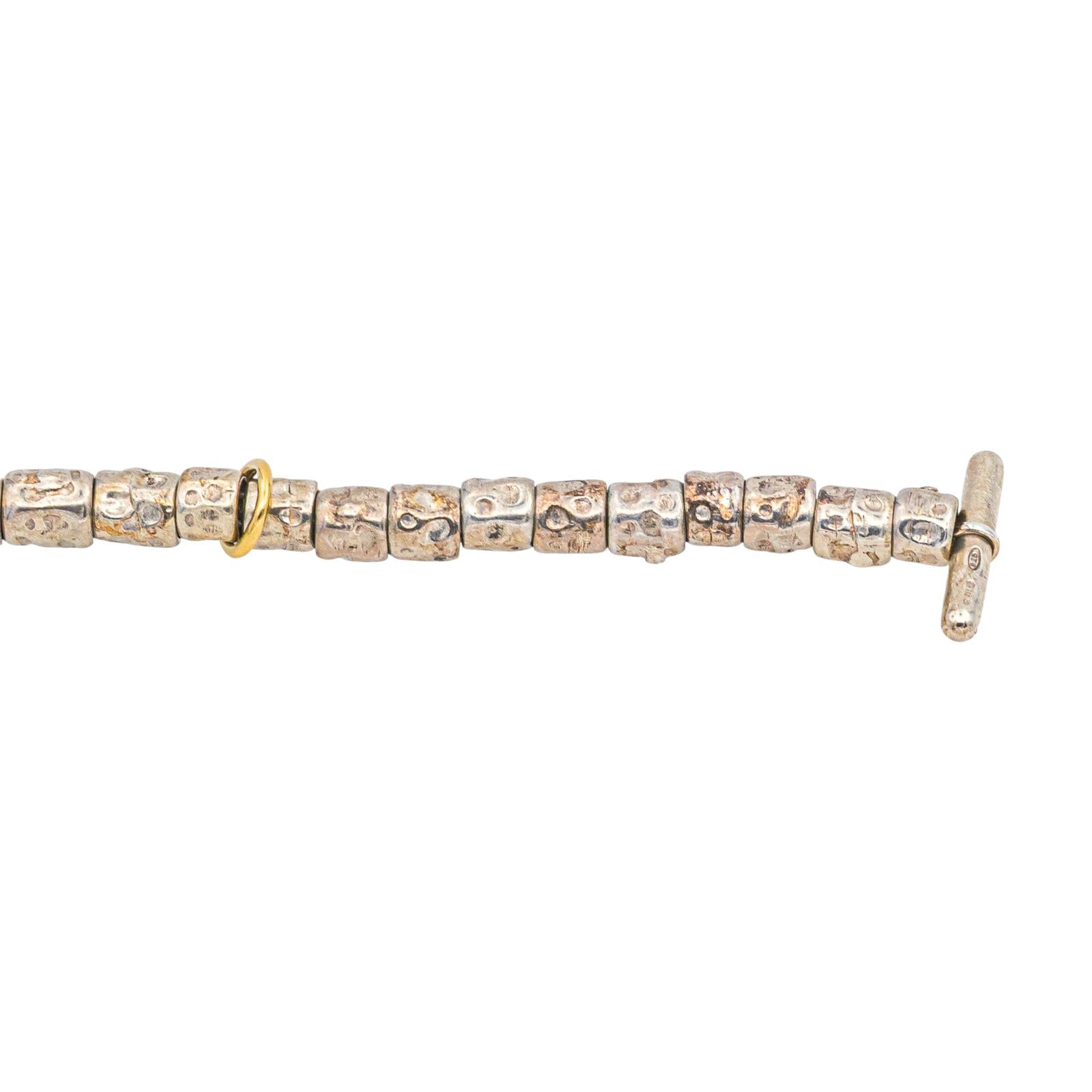 Bracelet signé de la Maison Dodo Pomellato en argent 925 millièmes et or jaune 750 millièmes (18 carats) testé, longueur : 18,50 cm, largeur : 1,00 cm, poids total : 15,46 g, vendu avec écrin d’origine et d’époque, bon état