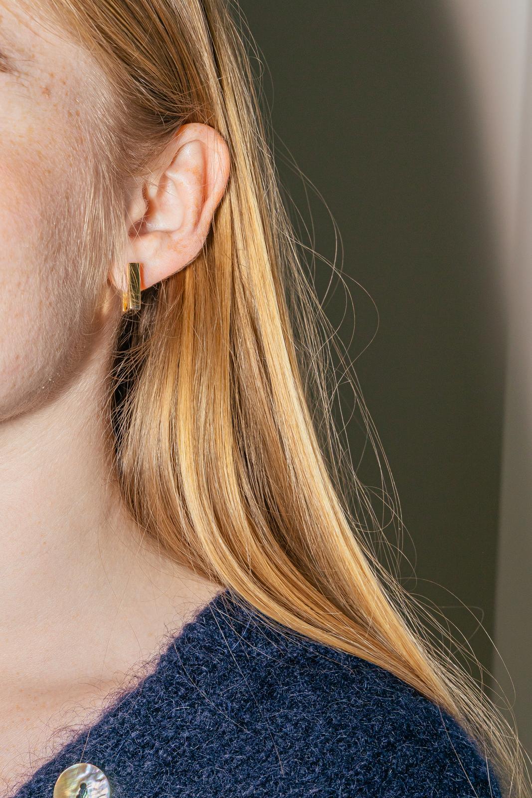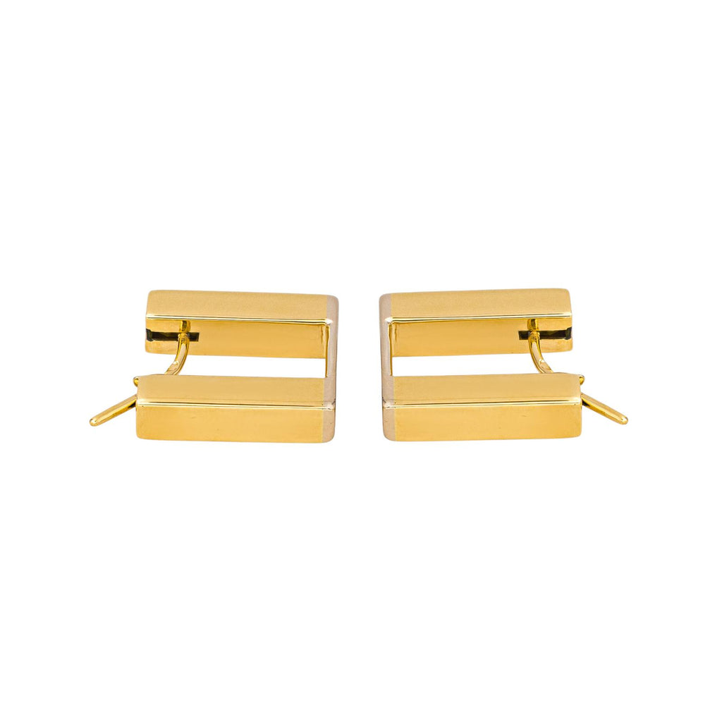 Créoles en or jaune 750 millièmes (18 carats), motif rectangulaire, longueur : 1,50 cm, largeur : 1,47 cm, poids total : 5,69 g, poinçon tête d’aigle, excellent état