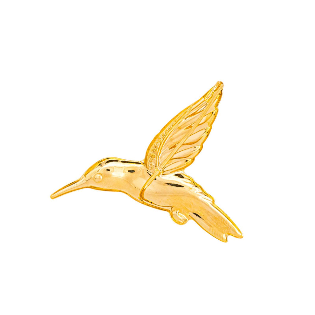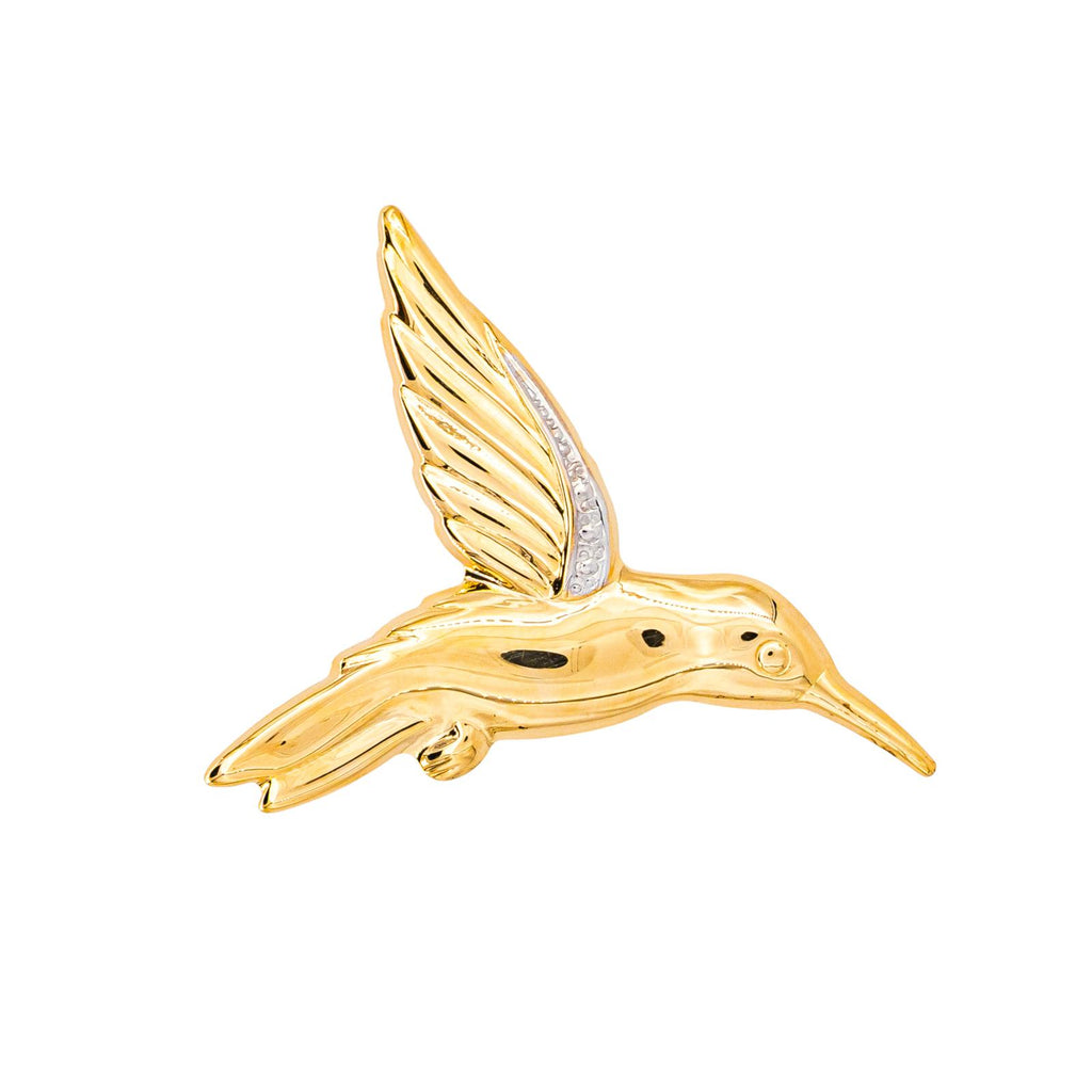 Broche en or jaune et blanc 750 millièmes (18 carats), motif colibri, dimensions : 3,10 cm x 4,10 cm, poids total : 2,42 g, poinçon tête d’aigle, excellent état