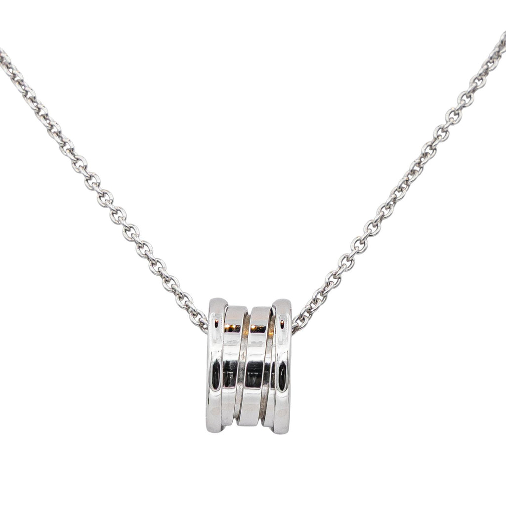 Collier signé de la Maison Bulgari en or blanc 750 millièmes (18 carats), modèle B.Zero1, maille Forçat, longueur : 42,00cm, largeur : 1,48cm, épaisseur : 0,16cm, poids total : 12,05g, poinçon Saint Bernard, vendue avec écrin d’origine et d’époque, numérotée : ATZKW2, excellent état