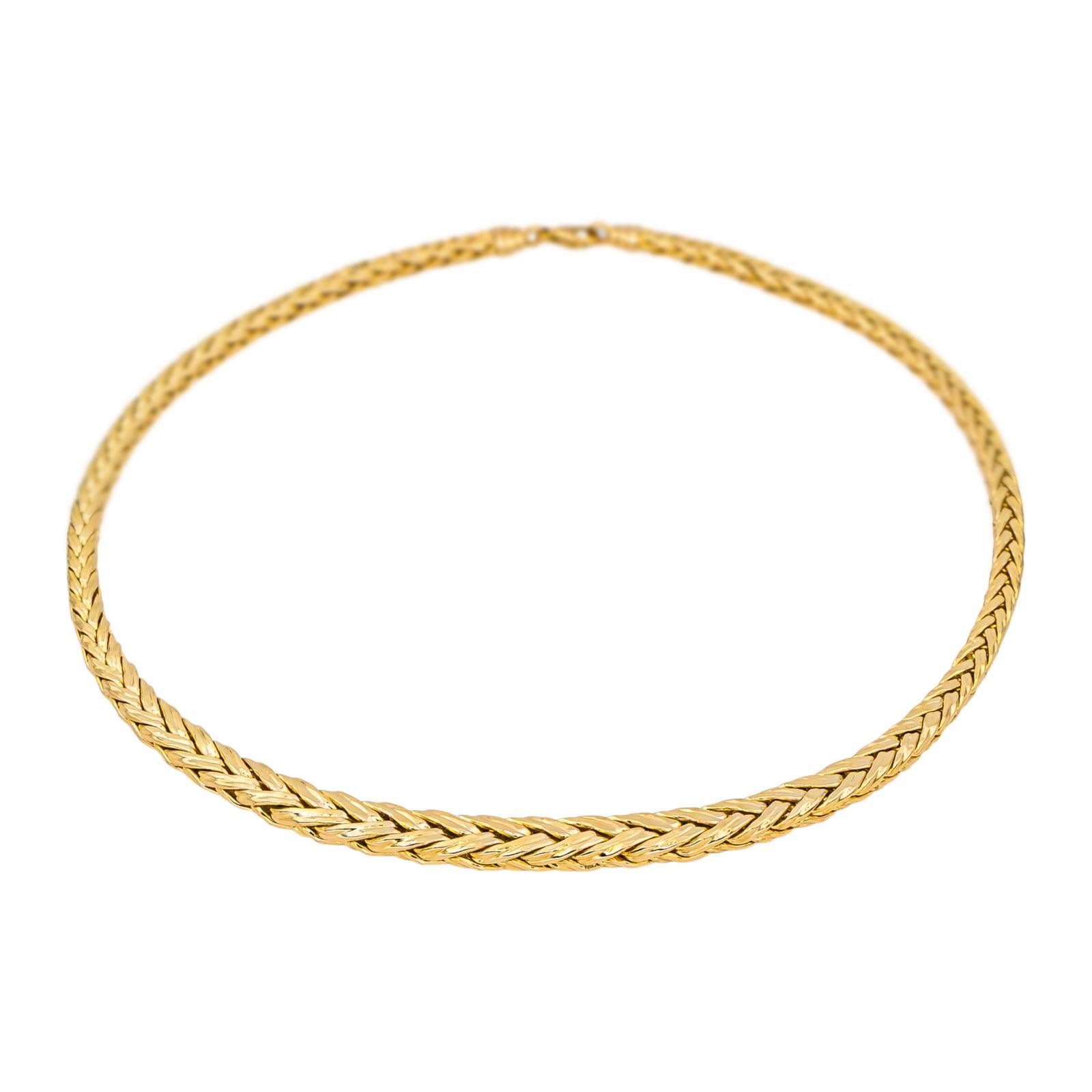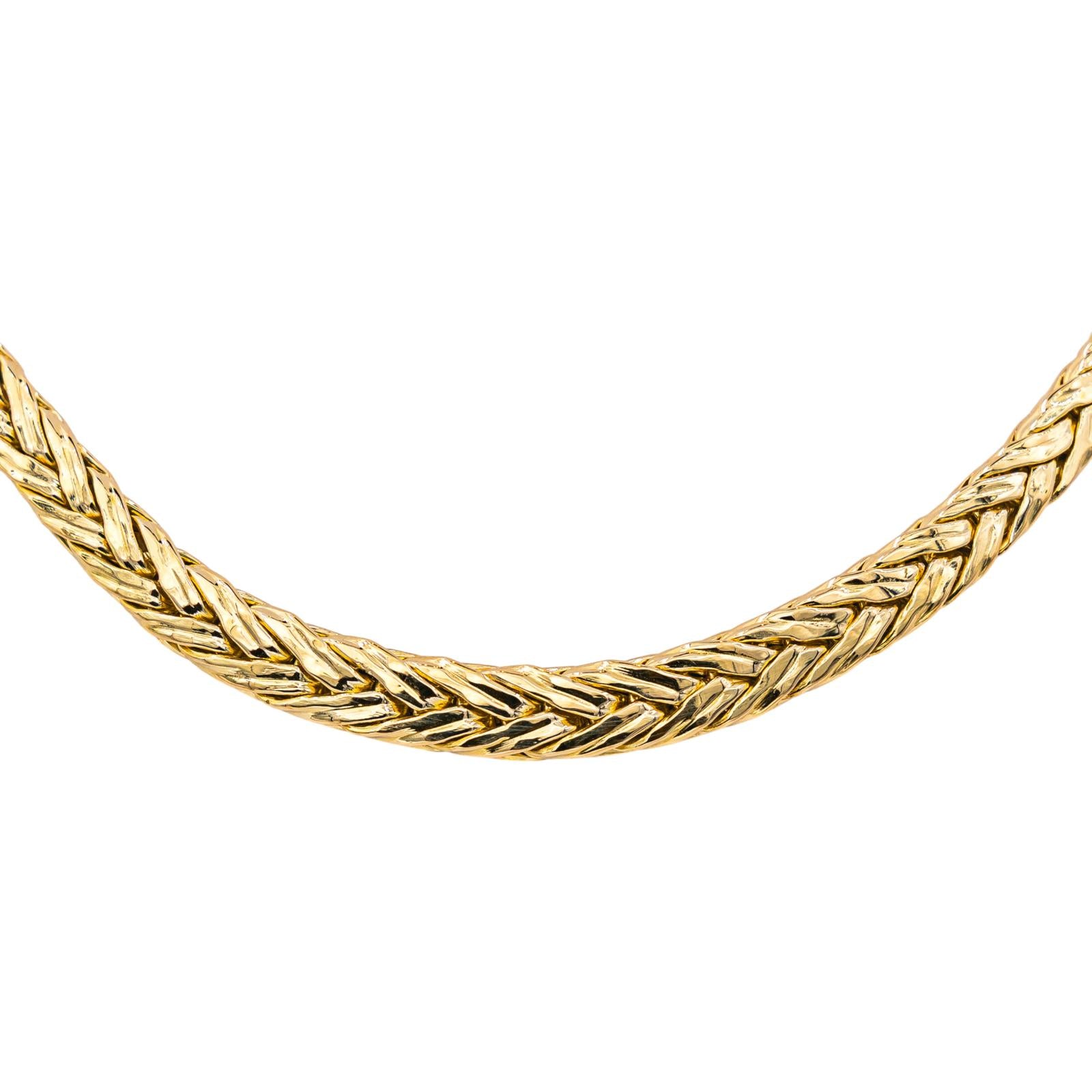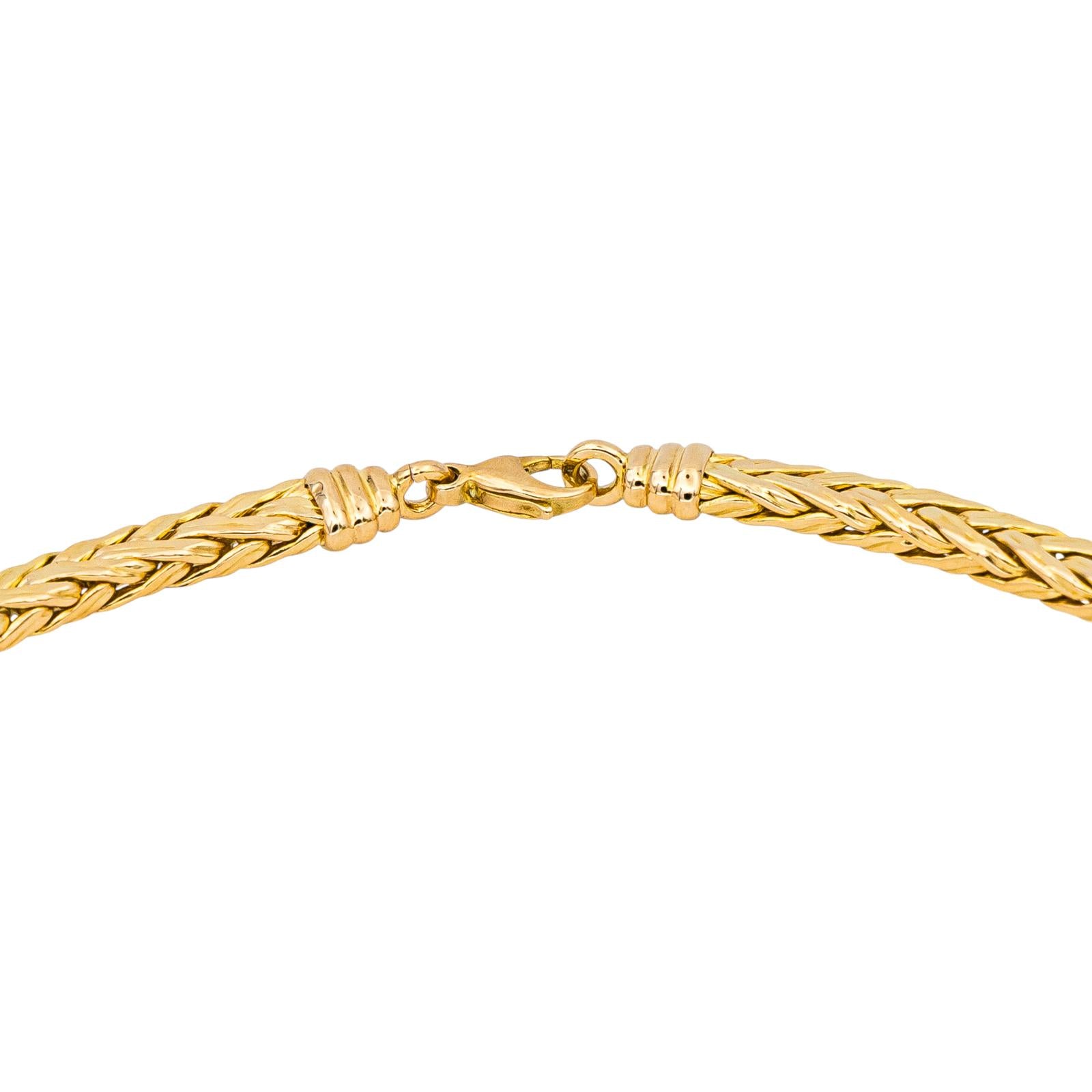 Chaîne en or jaune 750 millièmes (18 carats), maille palmier, longueur : 41,50 cm, largeur : 0,68 cm, poids total : 20,73 g, poinçon tête d’aigle, excellent état