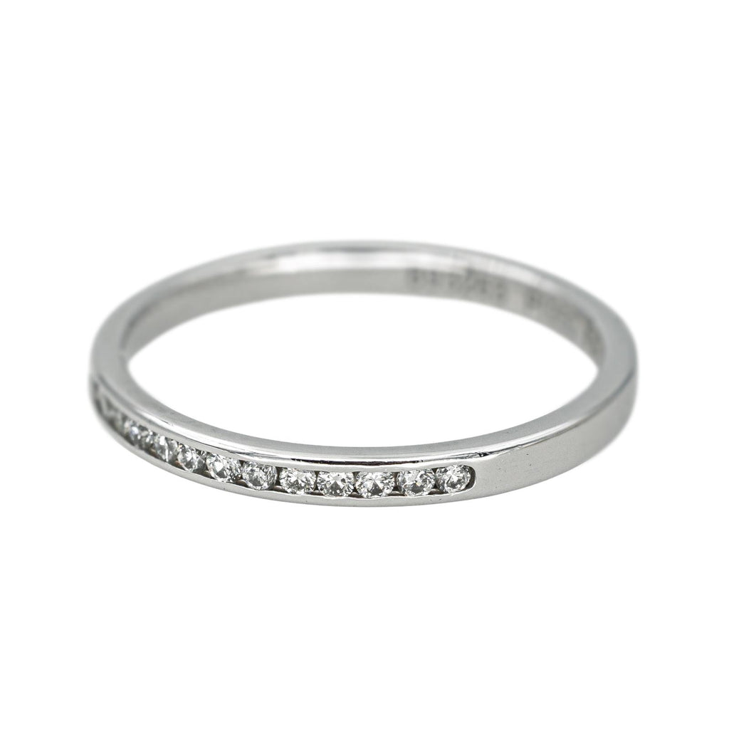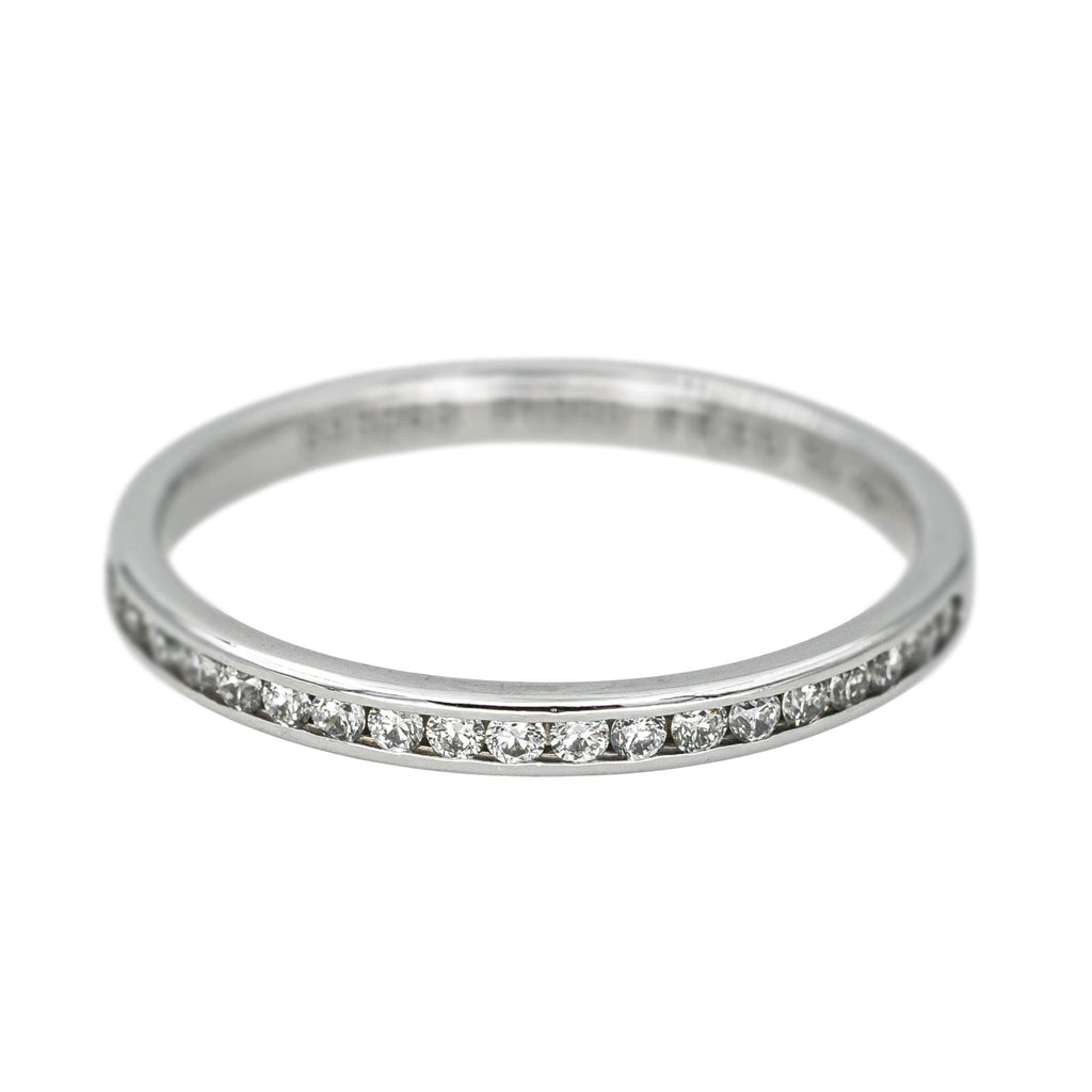 Alliance signée de la maison Fred en platine 950 millièmes, modèle "For Love", sertie de 22 diamants environ G-VS d'environ 0,007 ct chacun, poids total diamants : 0,17 ct, largeur sur le dessus : 0,18, tour de doigt : 50, numérotée : 893263, poids total : 2,11 g, fullset, poinçon tête de chien, excellent état