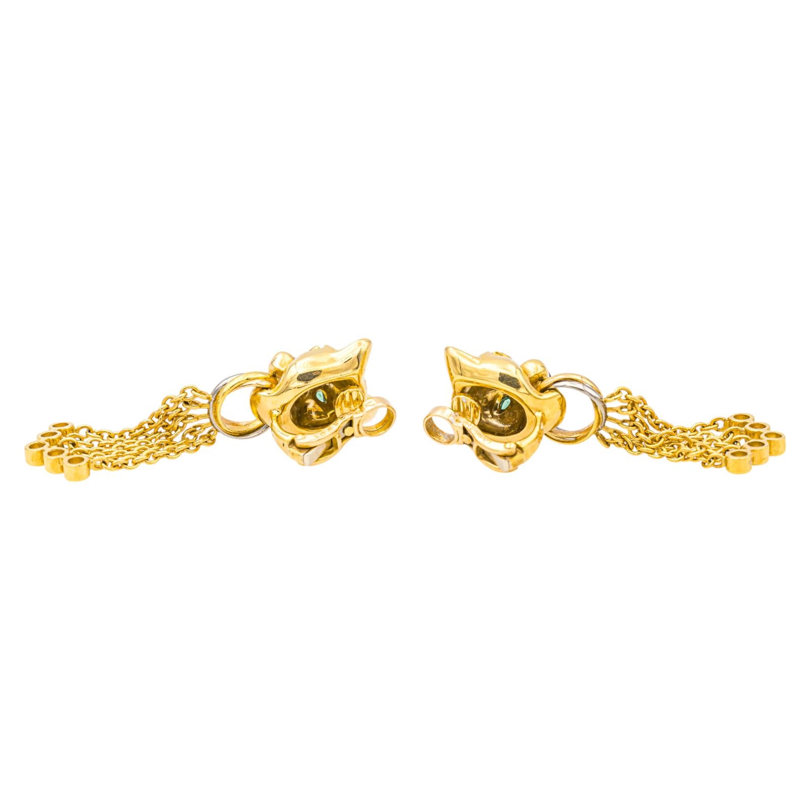 Boucles d'oreilles signées de la Maison Cartier, modèle panthère sierra, vintage, en or jaune 750 millièmes (18 carats), clips, pampilles serties de 10 diamants, taille brillant environ G/VS d'environ 0,05 ct chacun, poids total diamants environ 0,50 ct, et de 4 tsavorites, dimensions: 4,36 cm x 1,19 cm, poinçon tête d'aigle, numérotées: n° 625901, écrin Cartier d'origine, très bon état