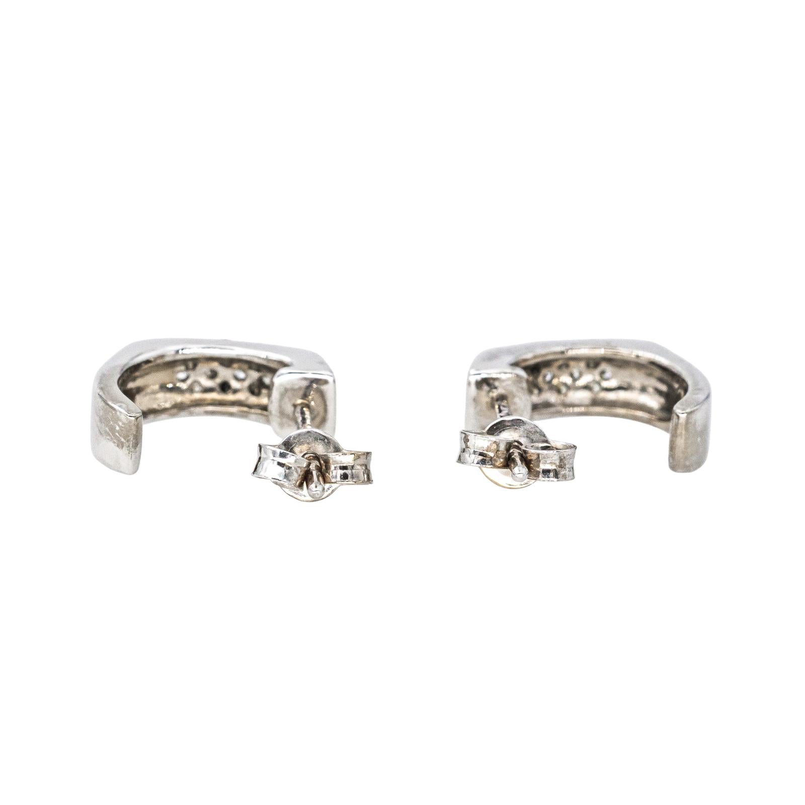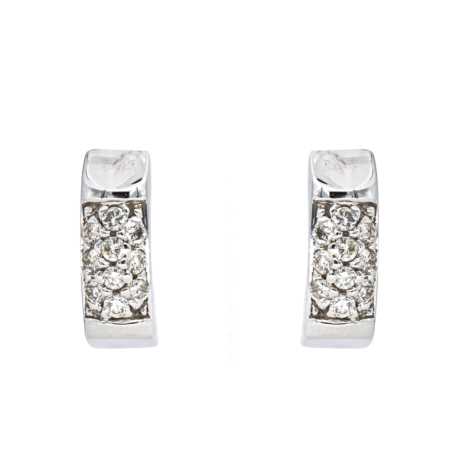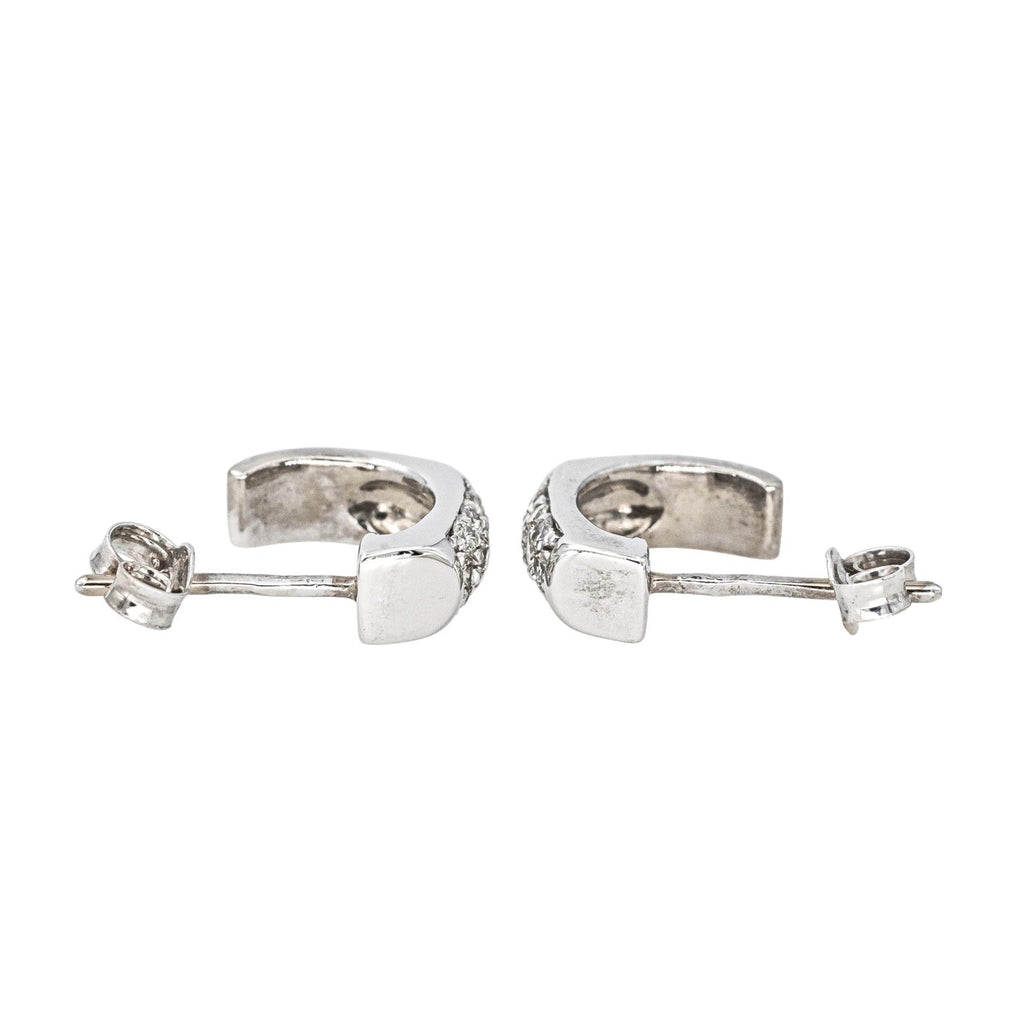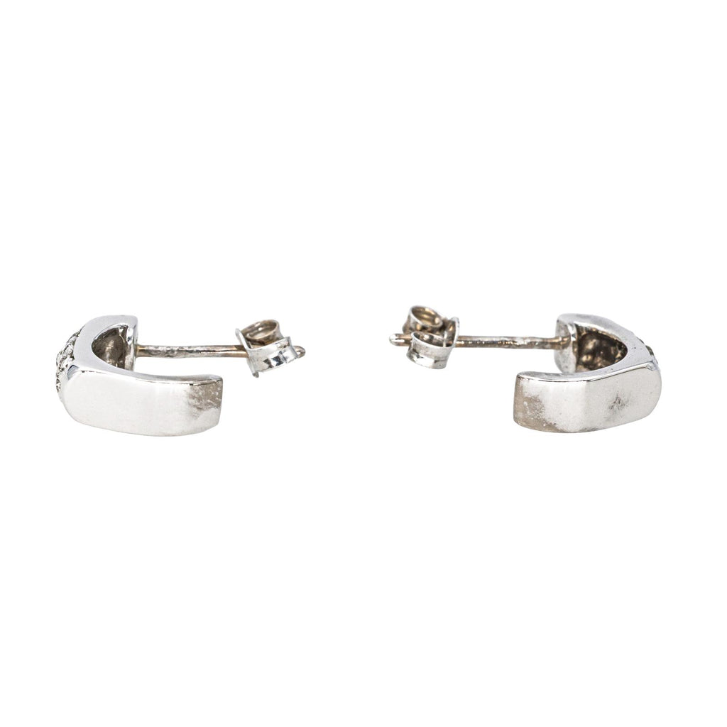 Demi-créoles en or blanc 750 millièmes (18 carats) testé, serties de 20 diamants, taille brillant, environ H-VS, poids total des diamants : environ 0,20 ct, (chaque diamant d'un poids d'environ 0,20 ct), diamètre : 1,10 cm, largeur : 0,36 cm, poids total : 2,47 g, excellent état