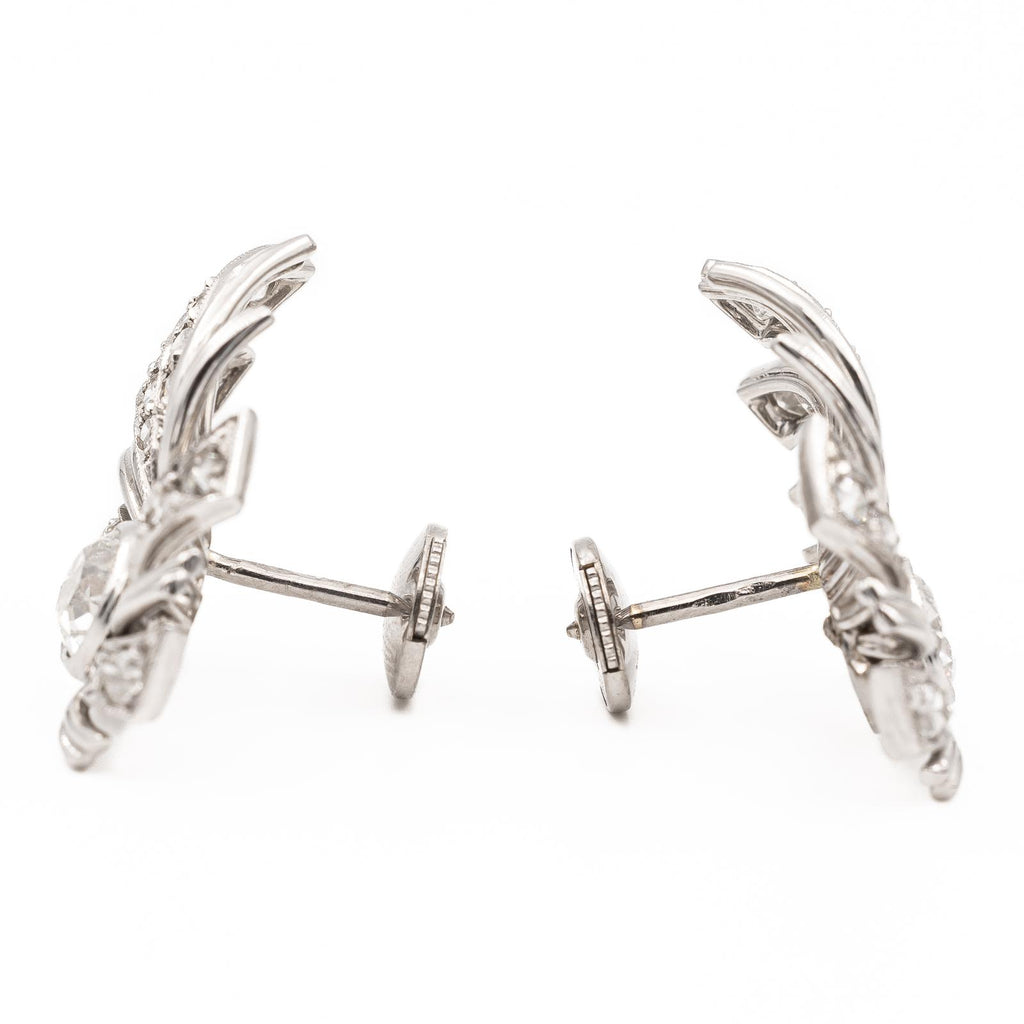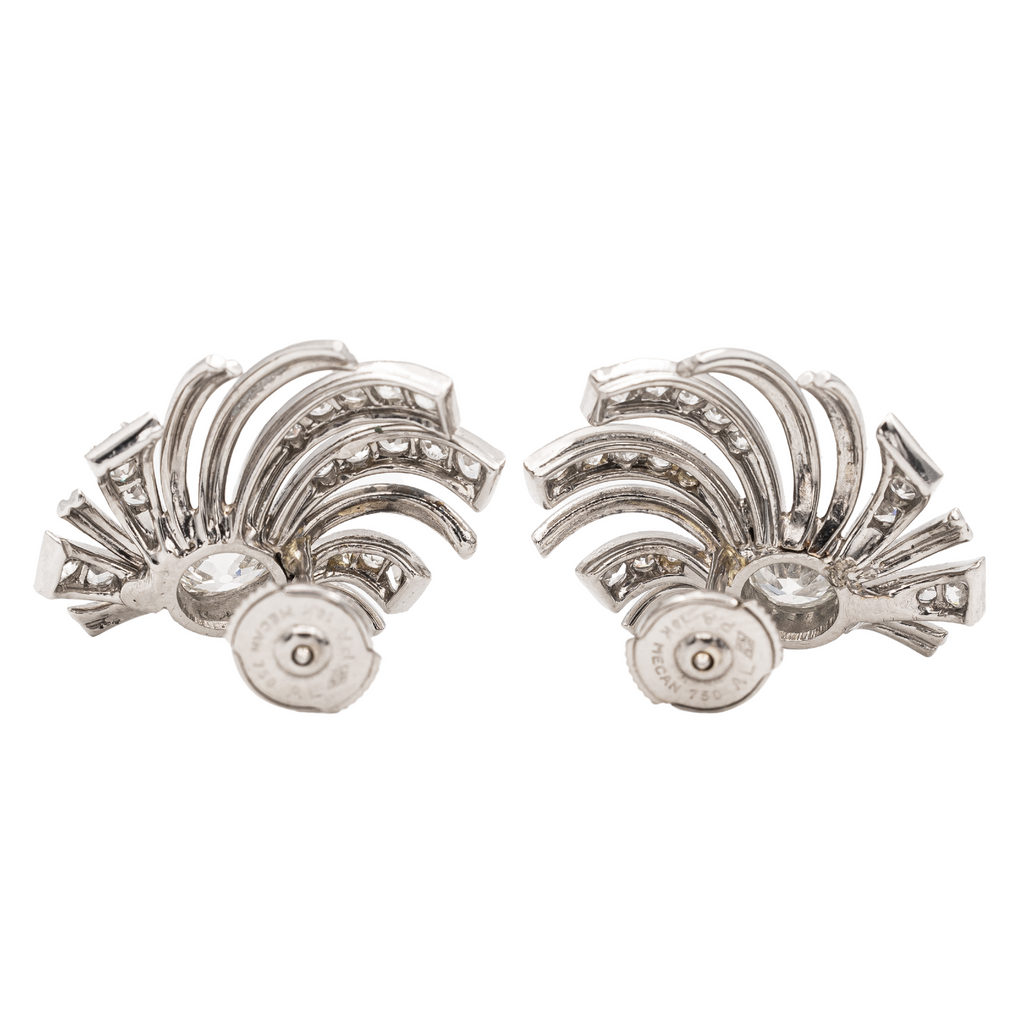 Boucles d’oreilles Art Déco en or blanc 750 millièmes (18 carats), serties de 38 diamants taille ancienne, estimés H/SI, chacun des 2 diamants centraux est d'environ 0,60 ct, poids total des diamants: environ 1,82 cts, système Alpa, dimensions: 2,56 cm x 2,08 cm, poids total: 11,15 g, poinçon hibou, excellent état