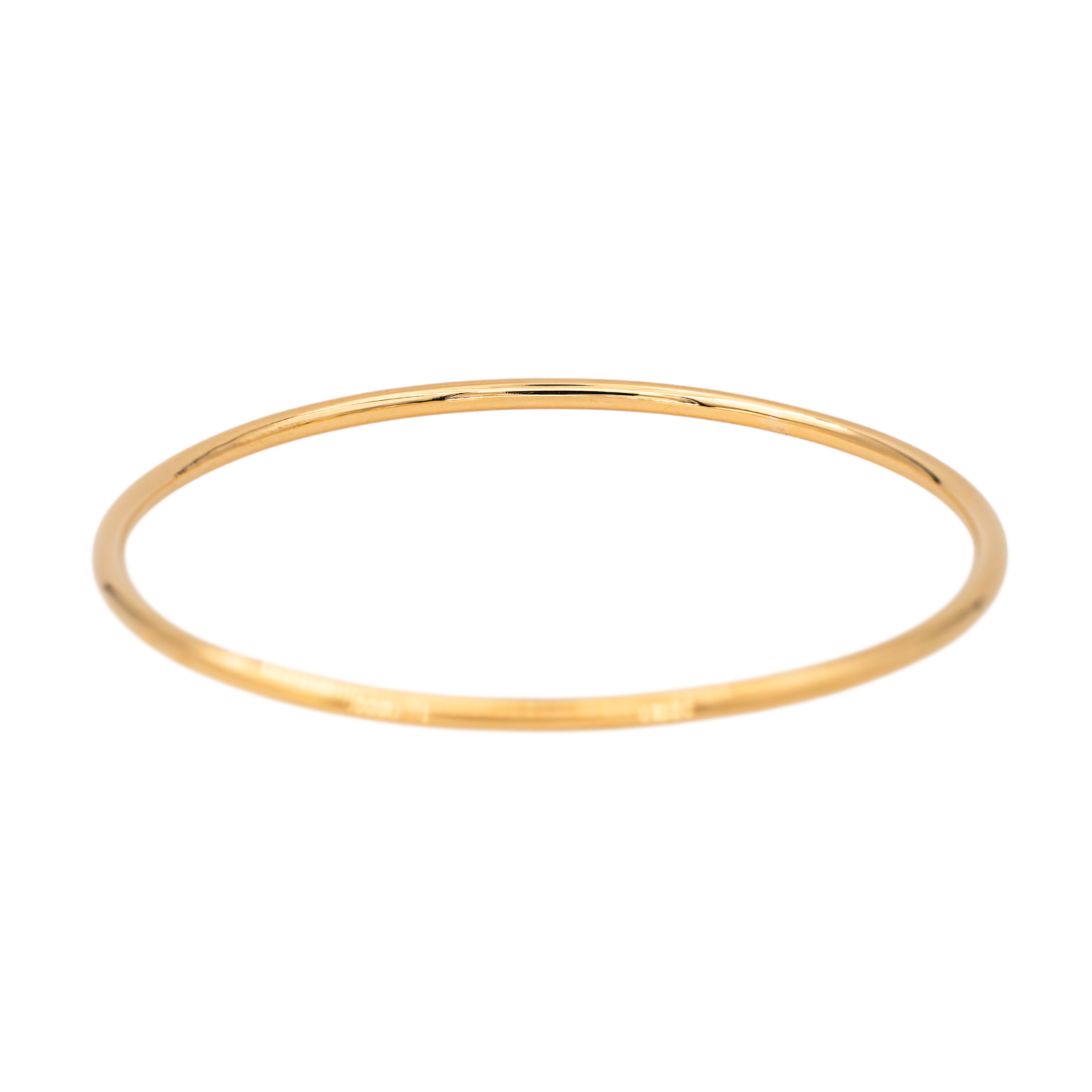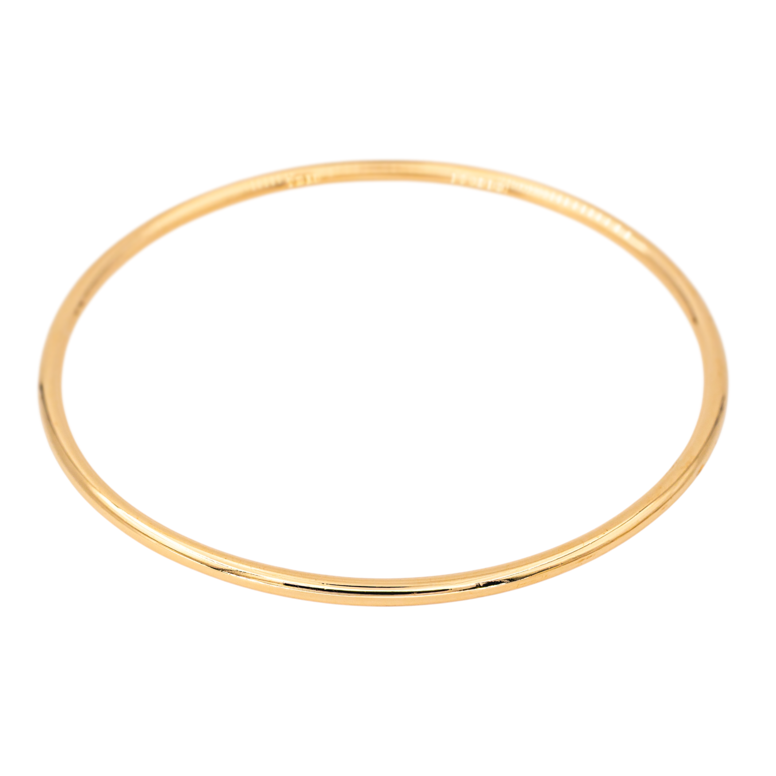 Bracelet jonc en or jaune 750 millièmes (18 carats), diamètre intérieur : 6,53 cm x 6,50 cm, largeur : 0,28 cm, tour de poignet : 22,50 cm, poids total : 20,57 g, poinçon tête d’aigle, excellent état
