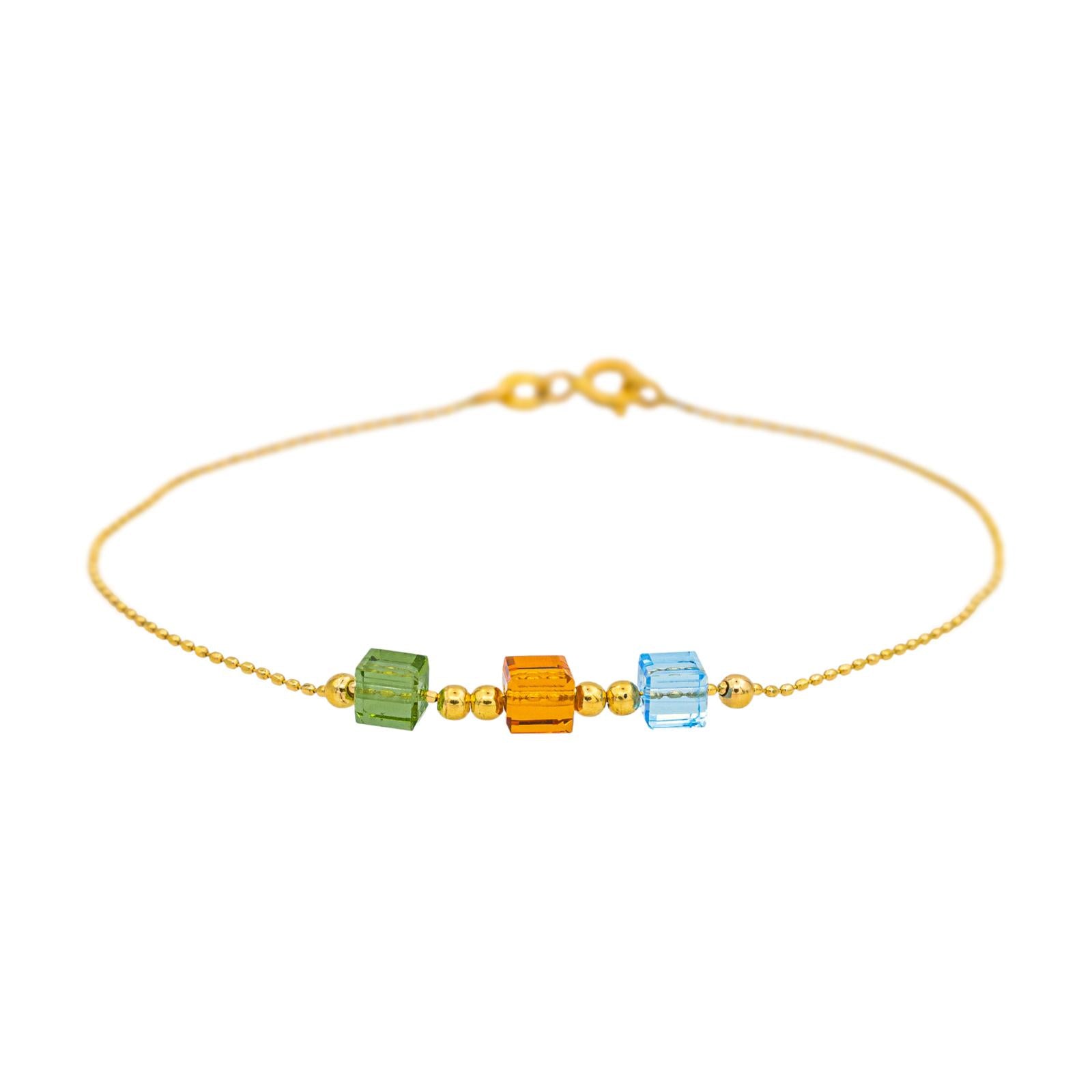 Bracelet en or jaune 750 millièmes (18 carats) testé, serti de résine colorée, maille boule, longueur : 19,00 cm, largeur : 0,04 cm, poids total : 1,61 g, excellent état