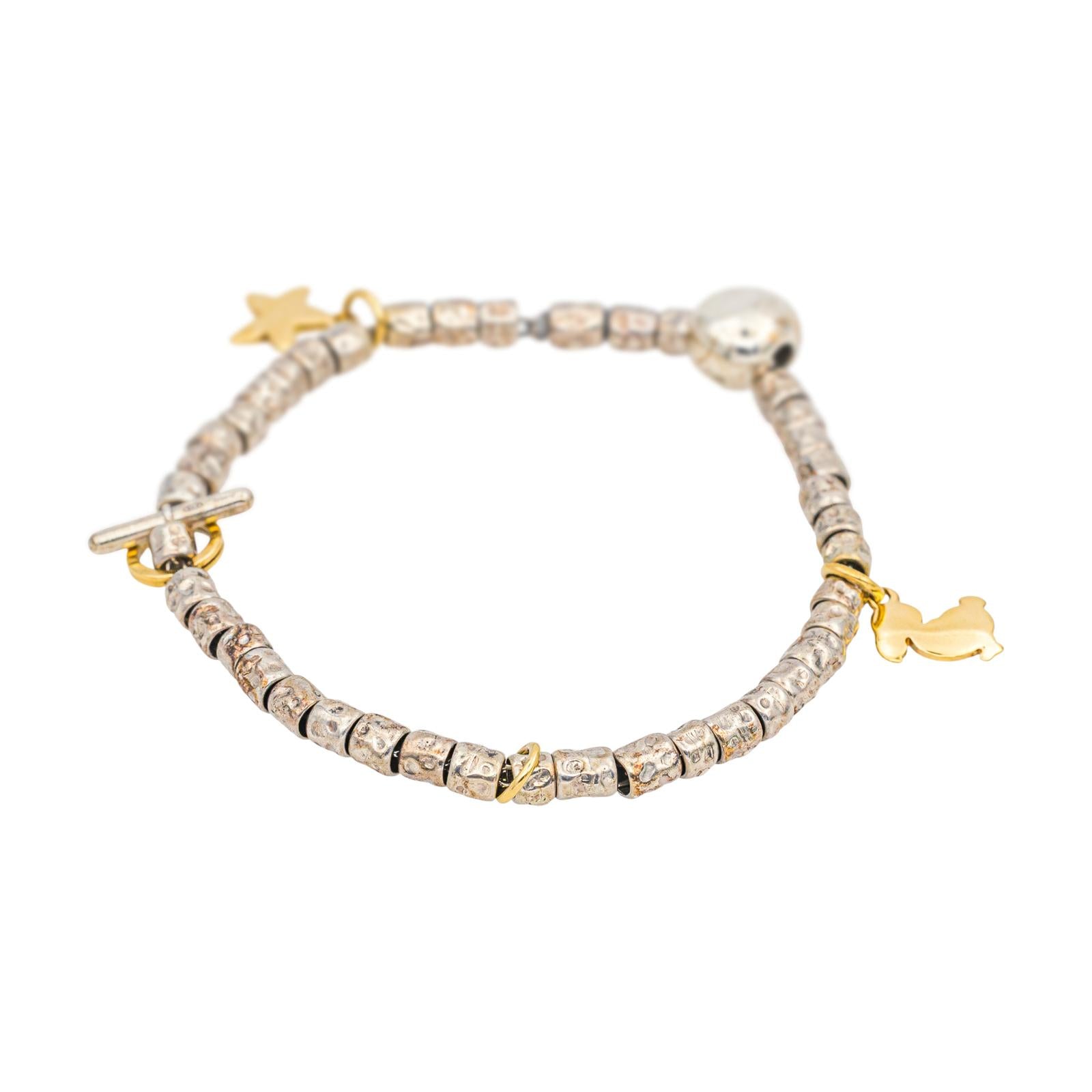 Bracelet signé de la Maison Dodo Pomellato en argent 925 millièmes et or jaune 750 millièmes (18 carats) testé, longueur : 18,50 cm, largeur : 1,00 cm, poids total : 15,46 g, vendu avec écrin d’origine et d’époque, bon état