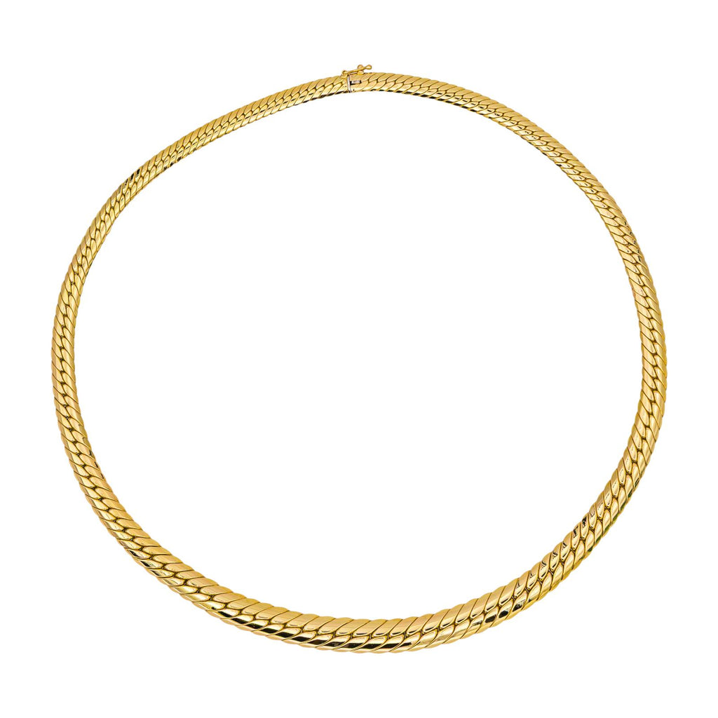 Collier en or jaune 750 millièmes (18 carats), maille anglaise en chute, longueur : 45,50 cm, largeur max : 0,83 cm, largeur min : 0,51 cm, poids total : 20,38 g, poinçon tête d’aigle, excellent état