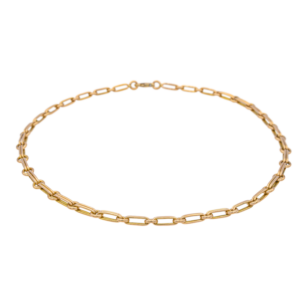 Necklace in 750 thousandths (18 carat) yellow gold, alternating round links and double oval links, length: 54 cm, round link width: 0.77, oval link width: 0.52 X 1.47, total weight: 79 .89 g, eagle's head hallmark, excellent condition.