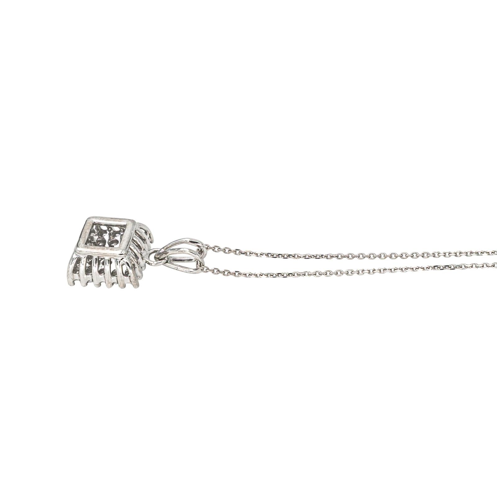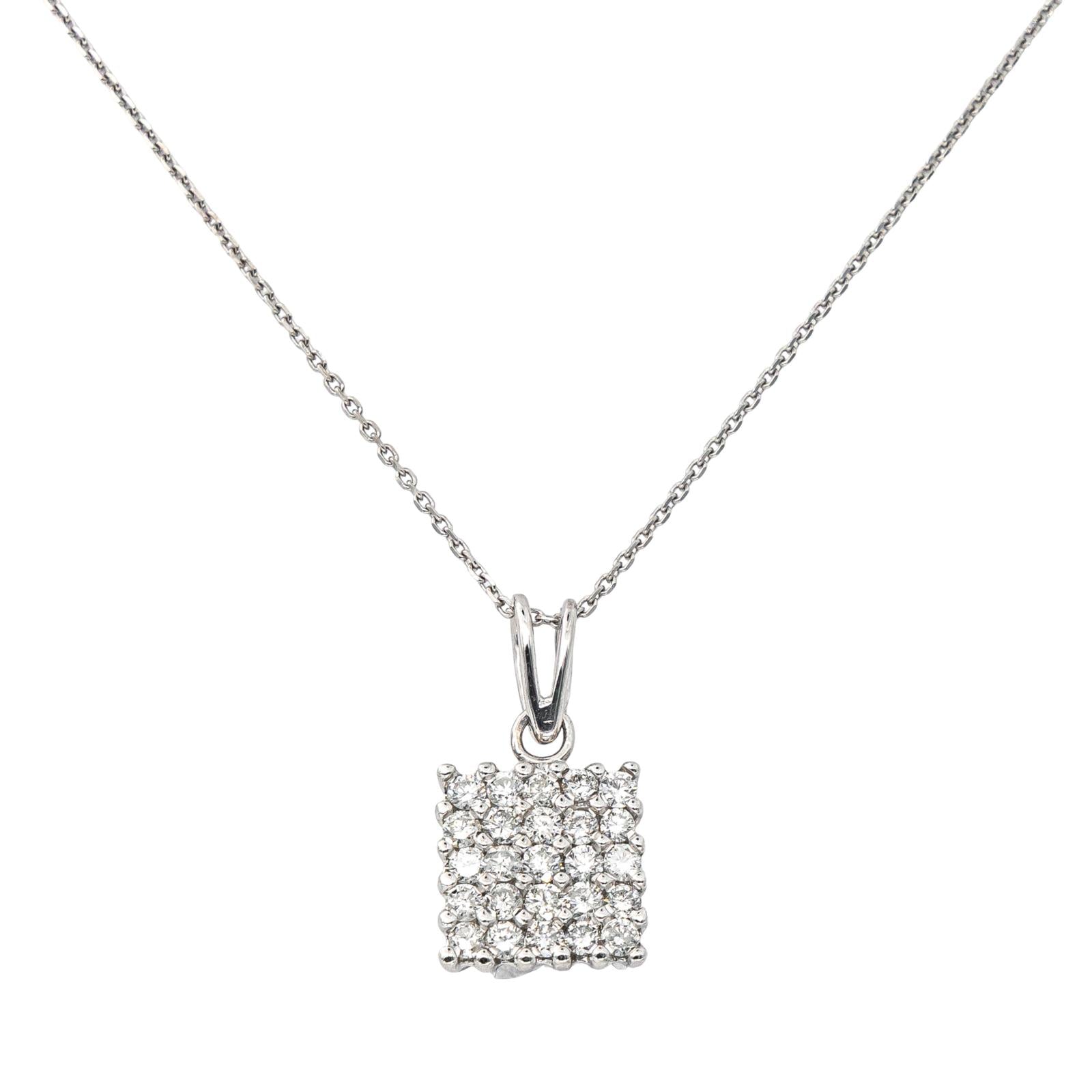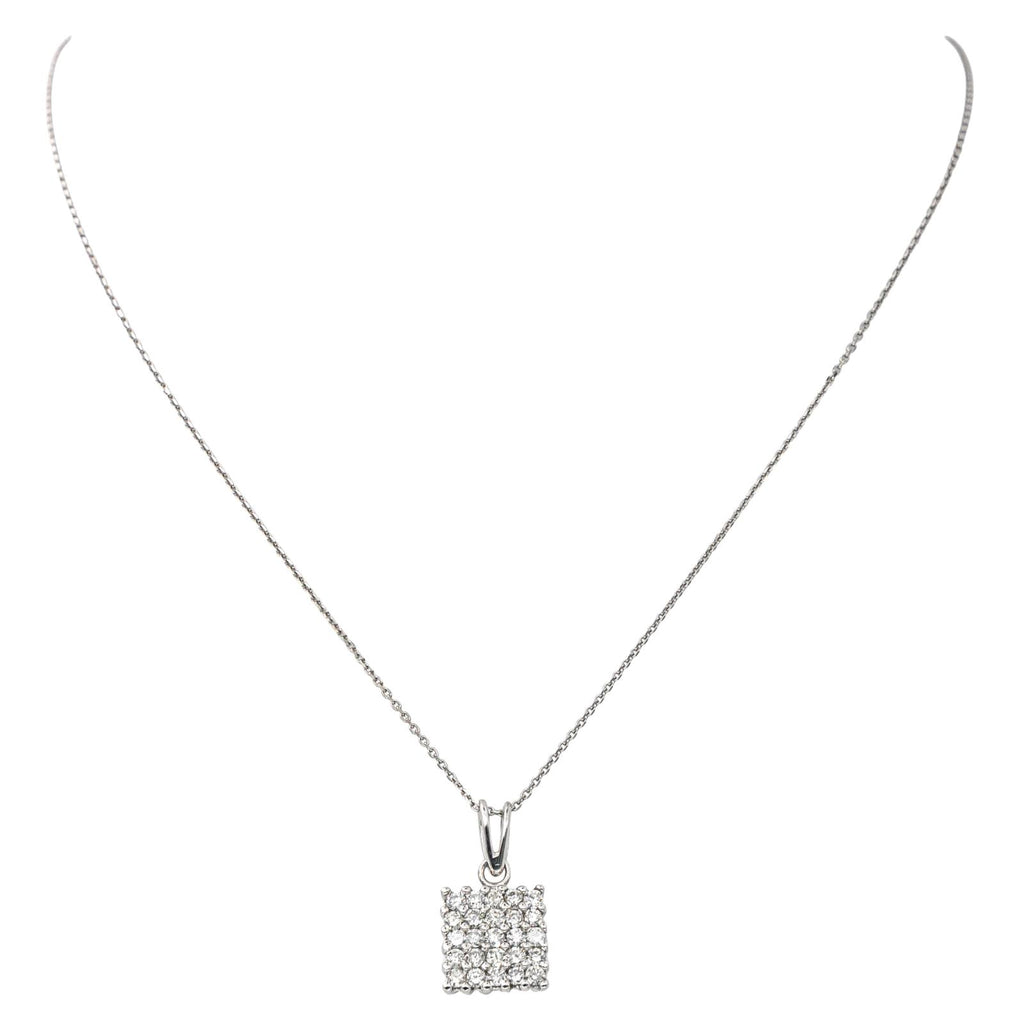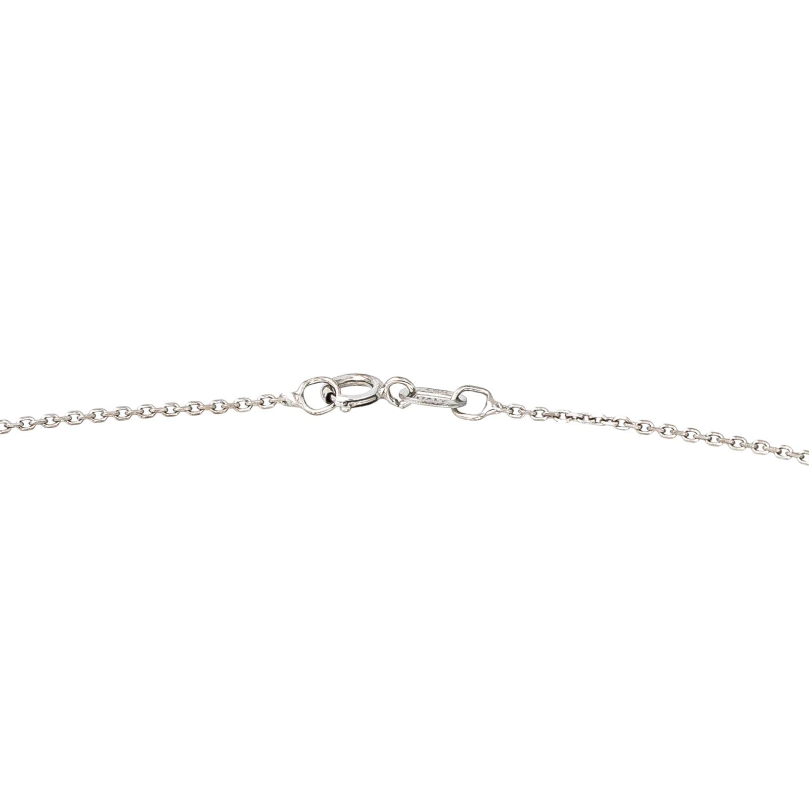 Collier en or blanc 750 millièmes (18 carats), serti de 25 diamants, taille brillant, environ G-SI, poids total de diamant : environ 1,25 cts, (chaque diamant d'un poids d'environ 0,05 ct), maille forçat, longueur : 42,00 cm, largeur de la chaîne : 0,06 cm, longueur du motif : 2,07 cm, largeur : 1,15 cm, poids total : 5,17 g, poinçon tête d’aigle, excellent état