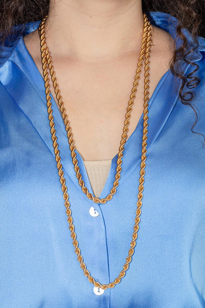 Collier en or rose 750 millièmes (18 carats), maille torsadée, longueur : 150 cm, largeur de la chaîne : 0,52 cm, poids total : 81,28 g, poinçon rhinocéros, excellent état