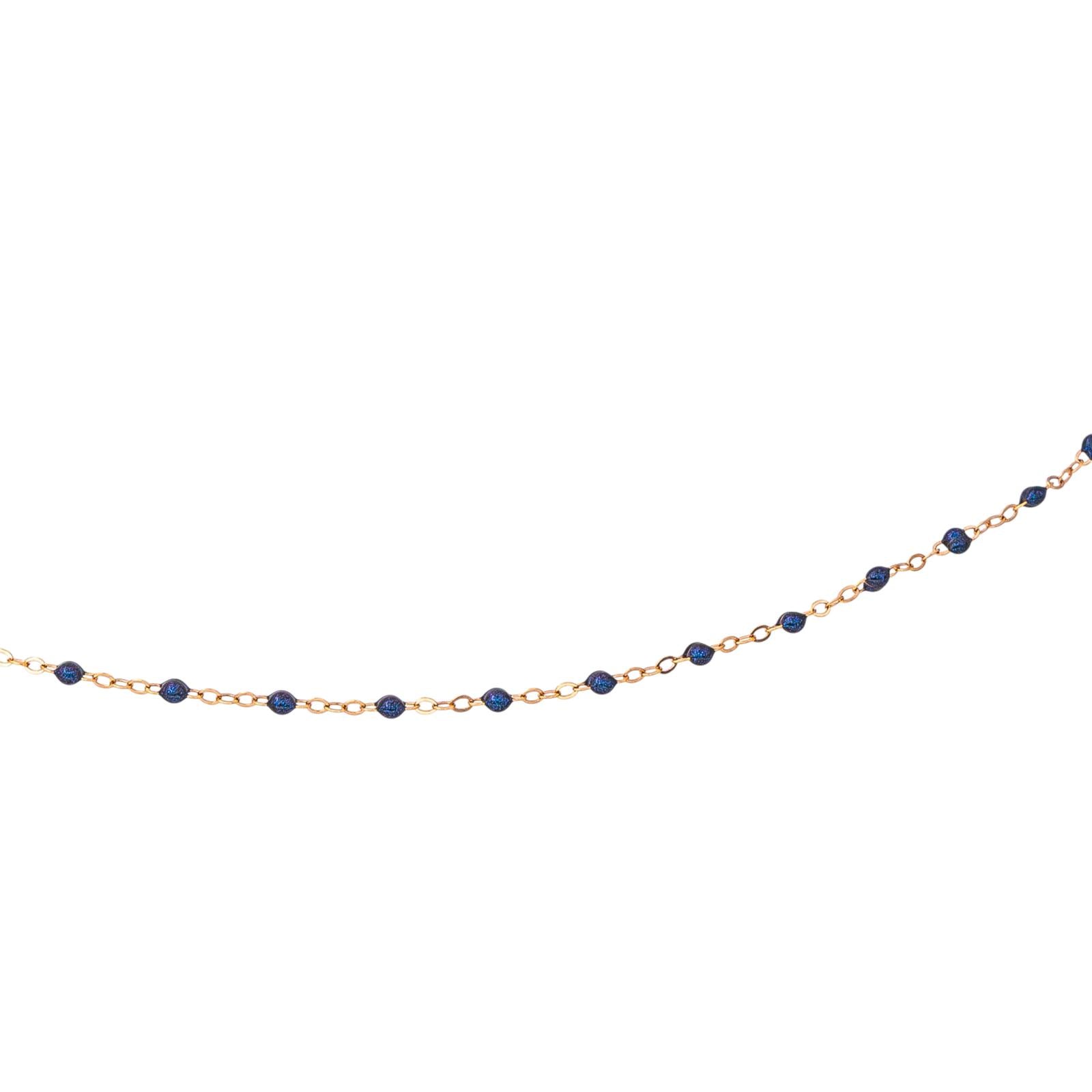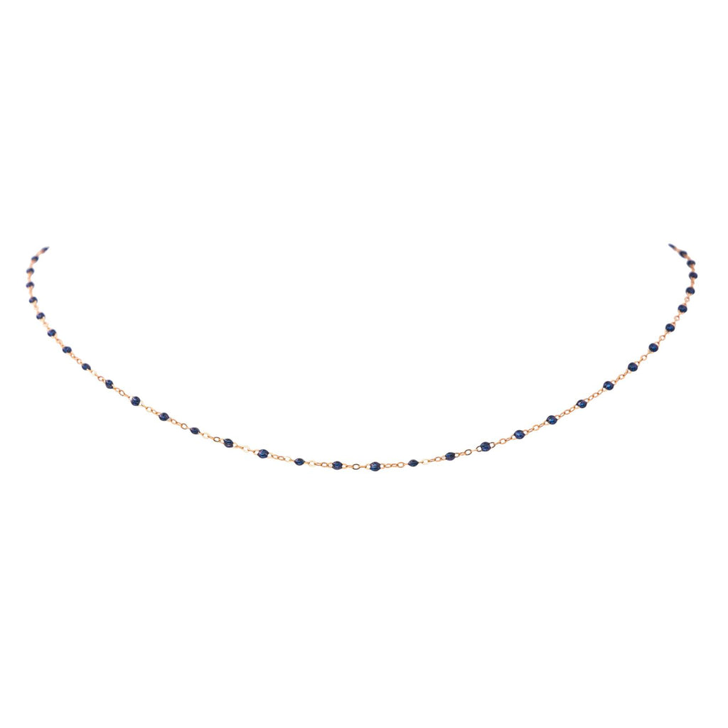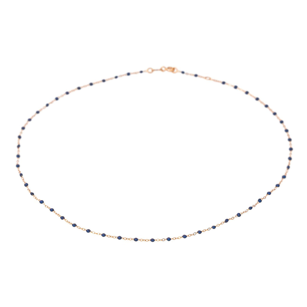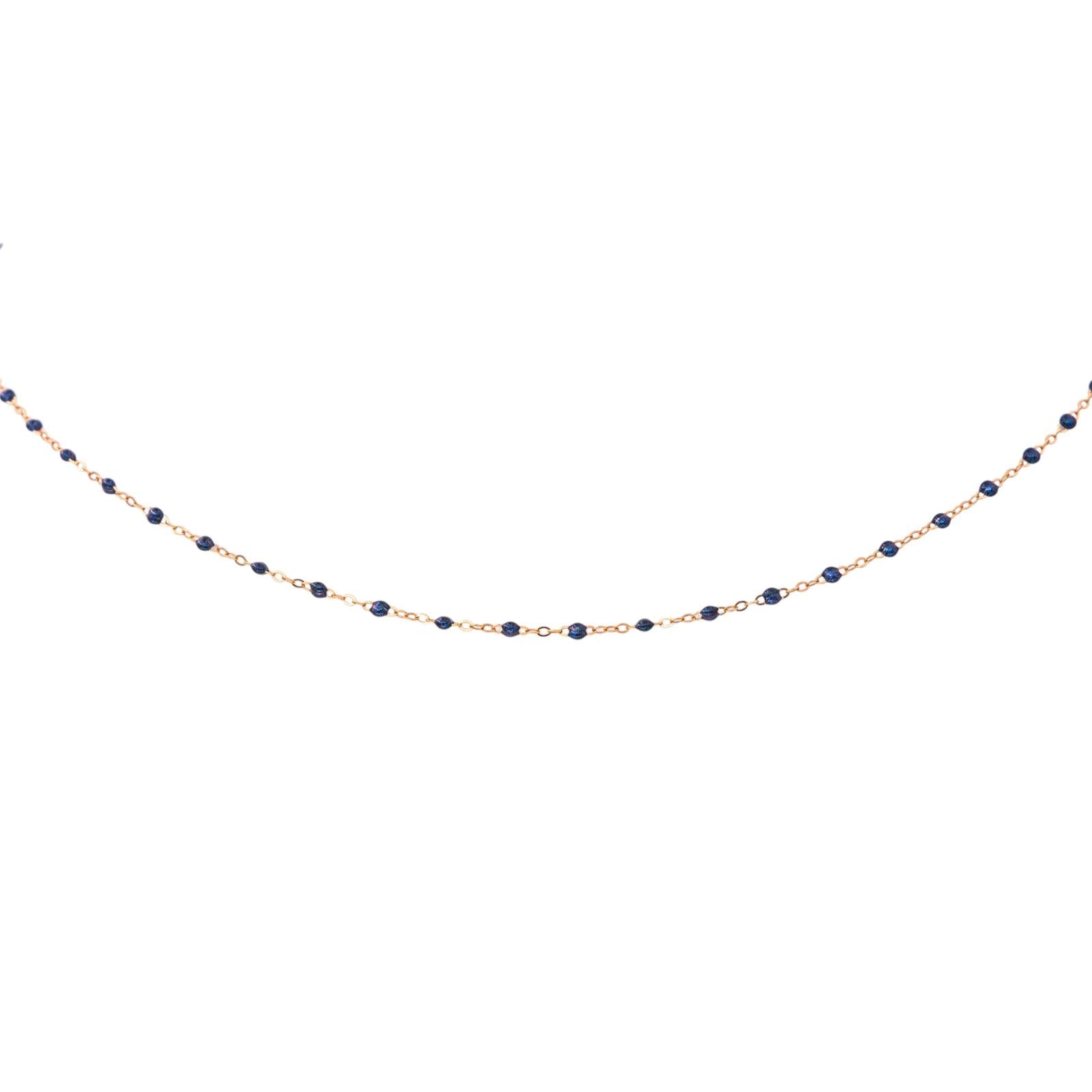Collier signé de la Maison Gigi Clozeau, or rose 750 millièmes (18 carats) testé, modèle Classique Gigi, orné de résine de couleur bleu nuit, maille forçat, longueur : 42,50 cm, largeur : 0,15 cm, poids total : 1.31 g, excellent état