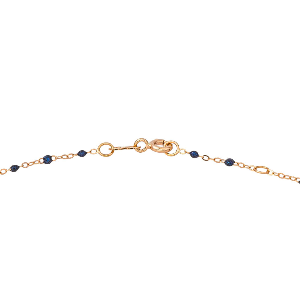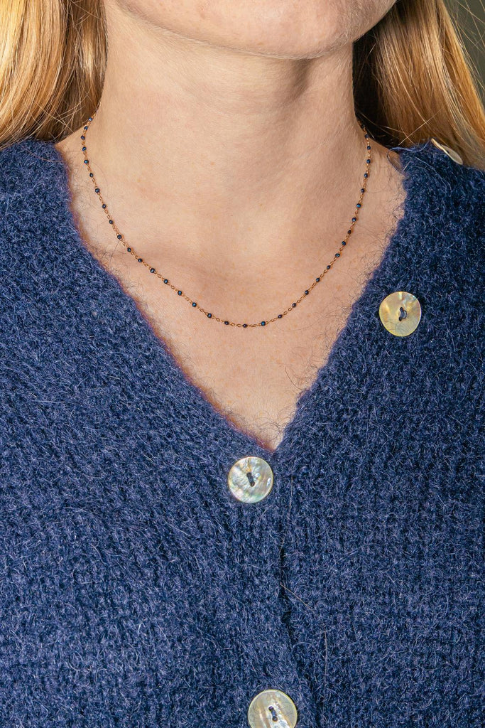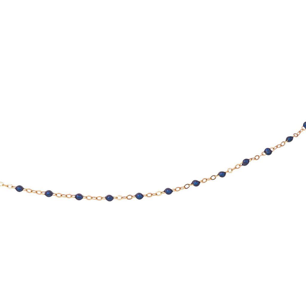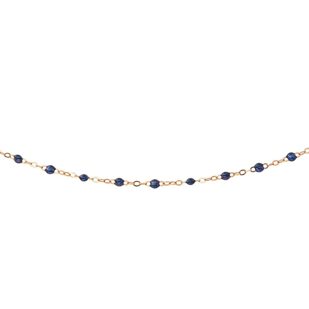 Collier signé de la Maison Gigi Clozeau, or rose 750 millièmes (18 carats) testé, modèle Classique Gigi, orné de résine de couleur bleu nuit, maille forçat, longueur : 42,50 cm, largeur : 0,15 cm, poids total : 1.31 g, excellent état