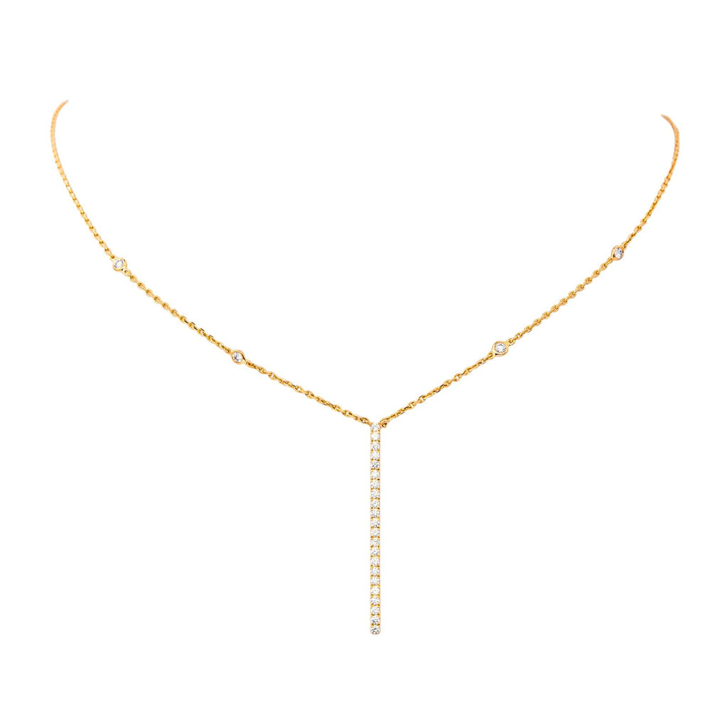 Collier signé de la Maison Messika en or rose 750 millièmes (18 carats), modèle Gatsby, réf 5449 PG, motifs géométriques sertis de diamants, taille brillant, environ F-VVS, poids total : environ 0,35 ct, (23 diamants un poids d'environ 0,01 ct chacun et 4 diamants d'un poids total d'environ 0,02 ct chacun), maille souple, longueur : 40 cm, largeur de la chaîne : 0,07 cm, longueur de la partie comprenant les motifs : 3,44 cm, largeur : 0,16 cm, poids total : 4,05 g, poinçon tête d’aigle, (vendue avec pochette d'origine et certificat), (numérotée : A73246), excellent état