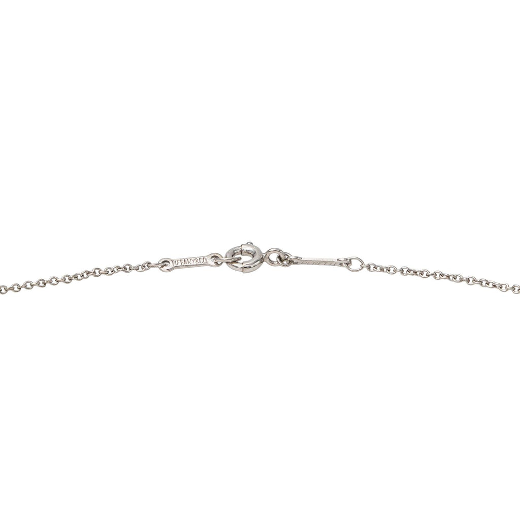 Collier signé de la Maison Tiffany en or blanc 750 millièmes (18 carats) testé, modèle Open Heart, motif coeur serti de 7 diamants, environ G-VS, taille brillant, poids total diamants : environ 0,03 ct (chaque diamant d'un poids d'environ 0,005 ct environ), maille forçat, longueur : 40 cm, longueur de la partie comprenant les motifs : 0,16 cm, poids total : 5,27 g, excellent état