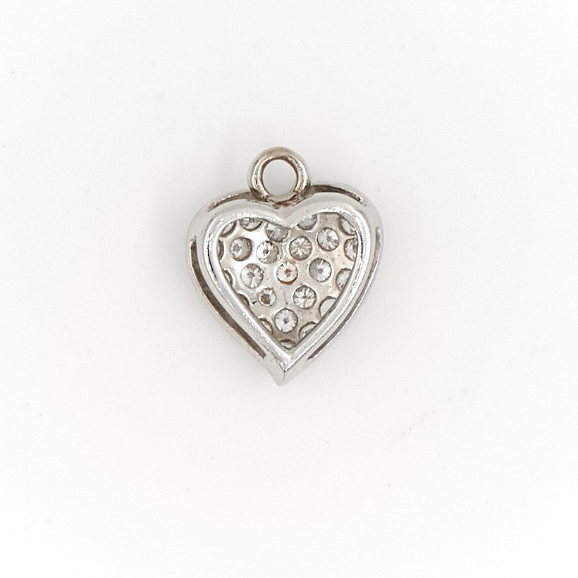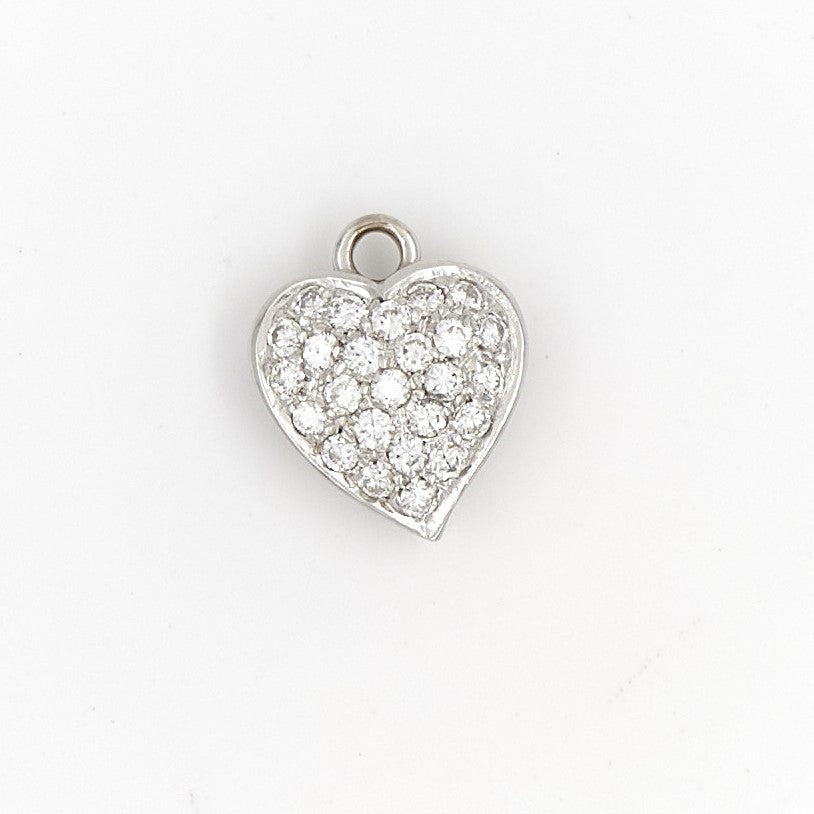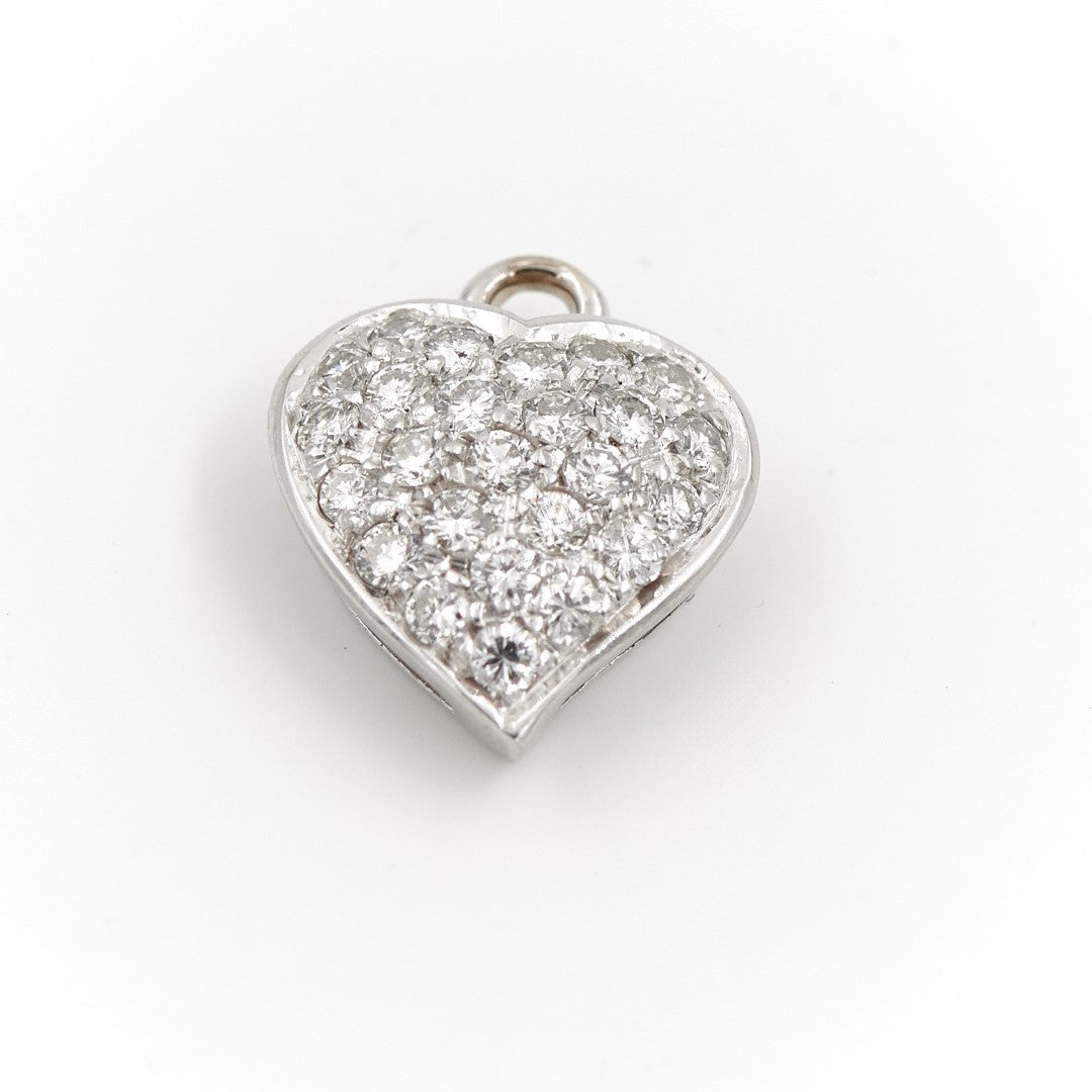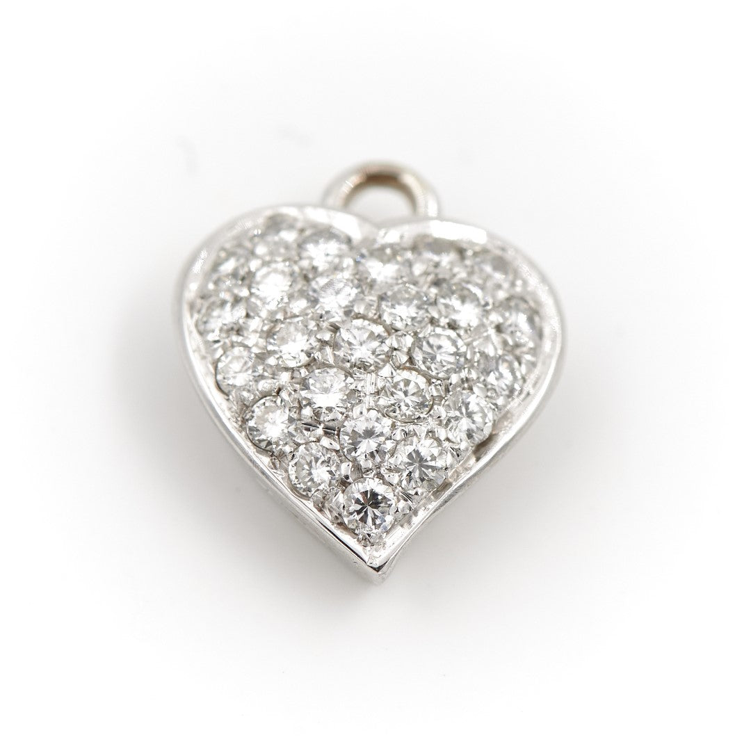 Pendentif cœur en or blanc 750 millièmes (18 carats) testé, pavé de 25 diamants taille brillant, d' environ 0,015 ct chacun, environ G-VS, poids total diamants: environ 0,375 ct, dimensions: 1,25 cm x 1,04 cm, poids total: 1,04 g, excellent état