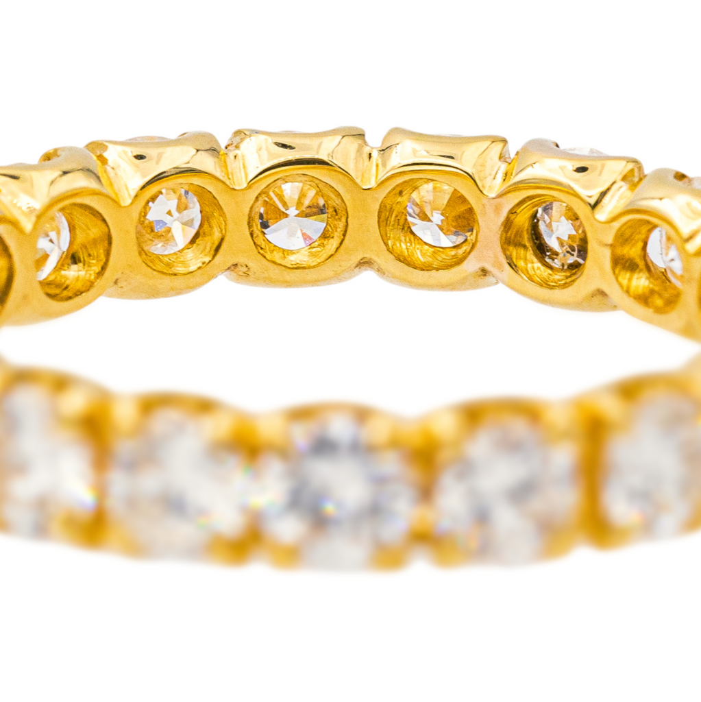 Alliance tour complet en or jaune 750 millièmes (18 carats), sertie de 19 diamants taille brillant environ H-VS, d'environ 0,10 ct chacun, poids total diamants : environ 1,90 cts, largeur sur le dessus : 0,33 cm, tour de doigt : 51, poids total : 3,10 g, poinçon tête de cheval, excellent état