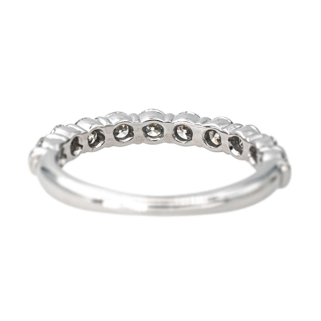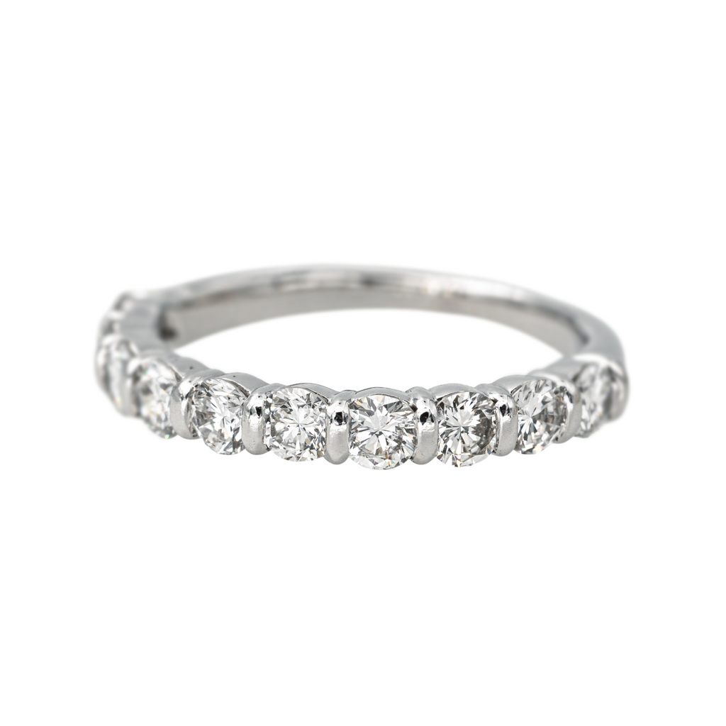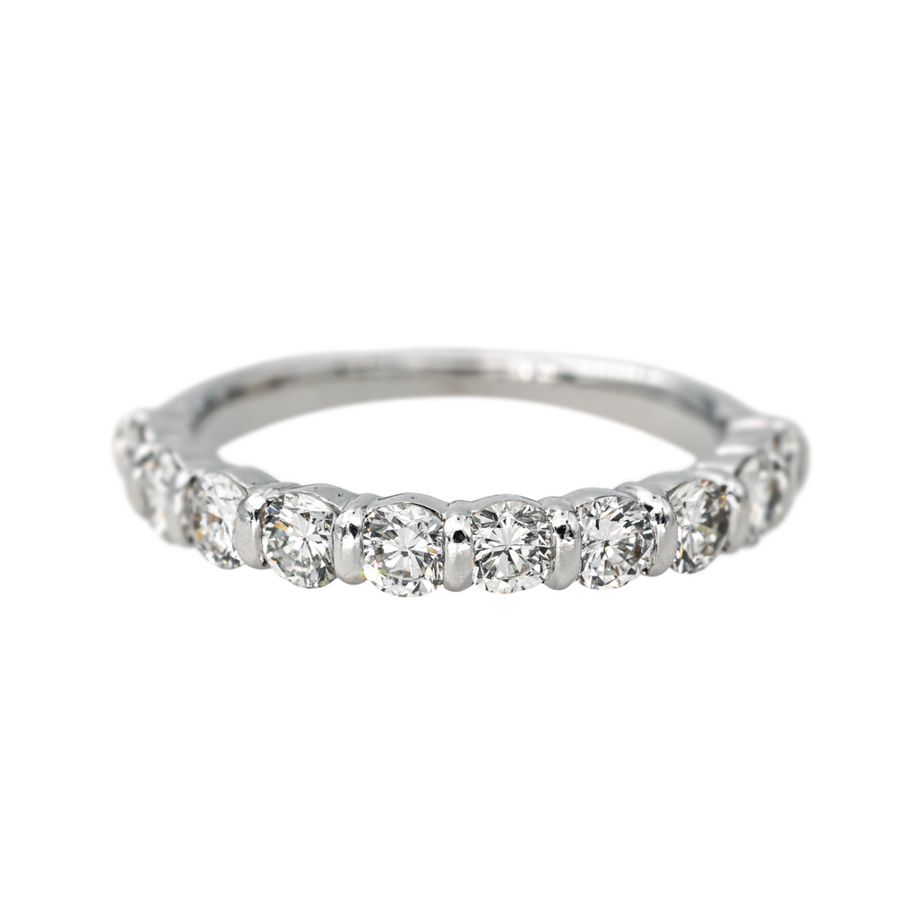 Demi-alliance en or blanc 750 millièmes (18 carats) testé, sertie de 10 diamants taille brillant environ G-SI, d'environ 0,08 ct chacun, poids total diamants : environ 0,80 ct, largeur sur le dessus : 0,28 cm, tour de doigt : 49, poids total : 2,64 g, excellent état