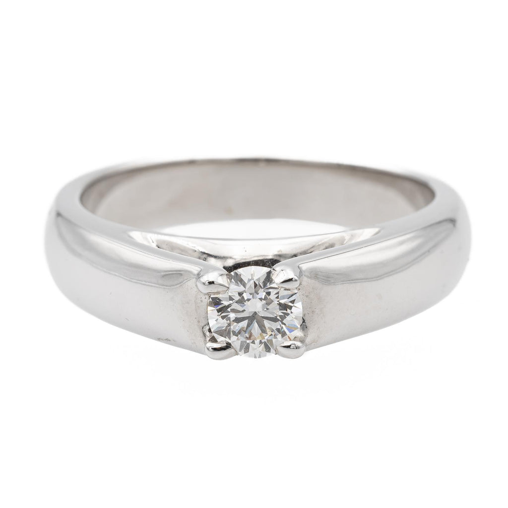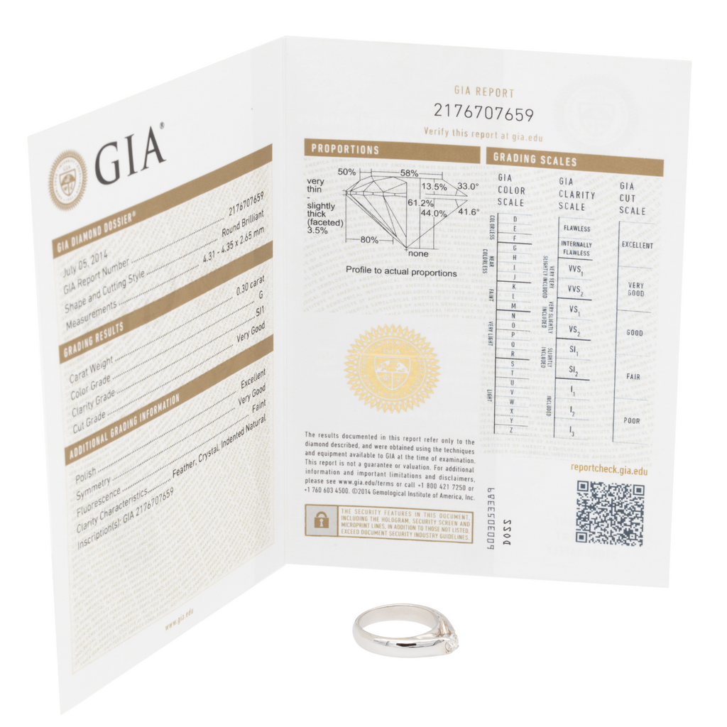 Solitaire in 750 thousandths (18 carat) white gold, set with a 0.30 ct G-SI1 brilliant-cut diamond, GIA 2176707659 certified, ring size: 54, ring width: 0.44 cm, total weight: 7.23 g, eagle's head hallmark, mint condition, Visible in Marseille