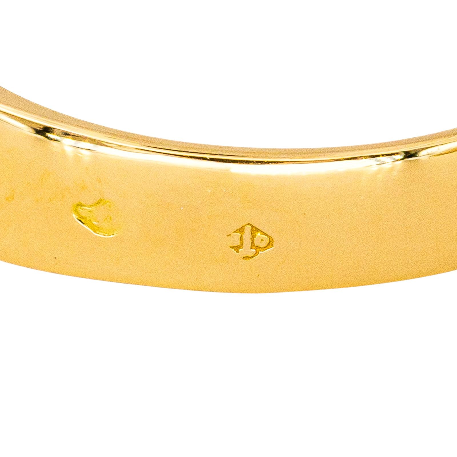 Bague en or jaune 750 millièmes (18 carats), sertie d'une émeraude, taille émeraude, d'un poids total d'environ 0,34 ct, largeur sur le dessus : 0,60 cm, tour de doigt : 52, poids total : 6,38 g, poinçon tête d'aigle, excellent état