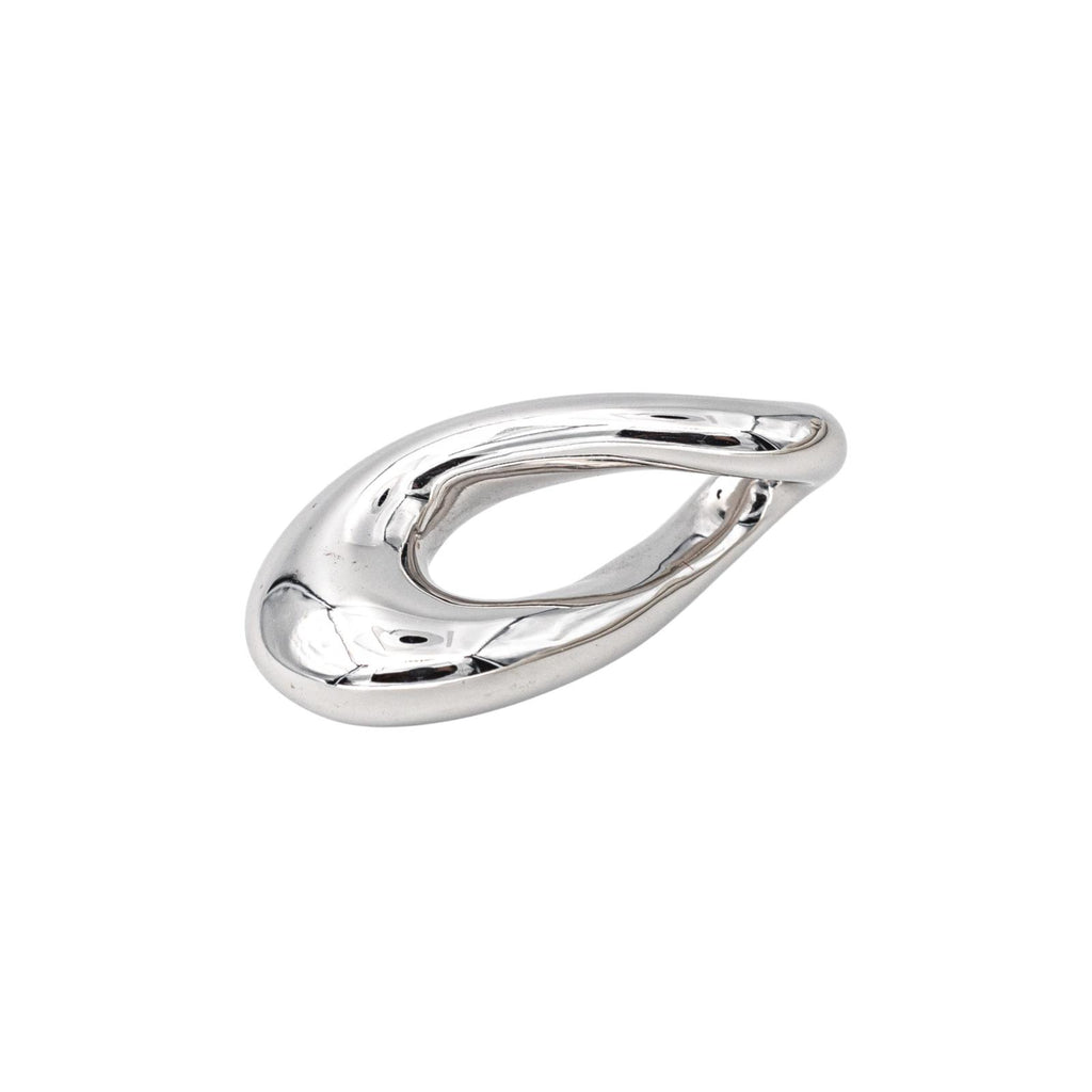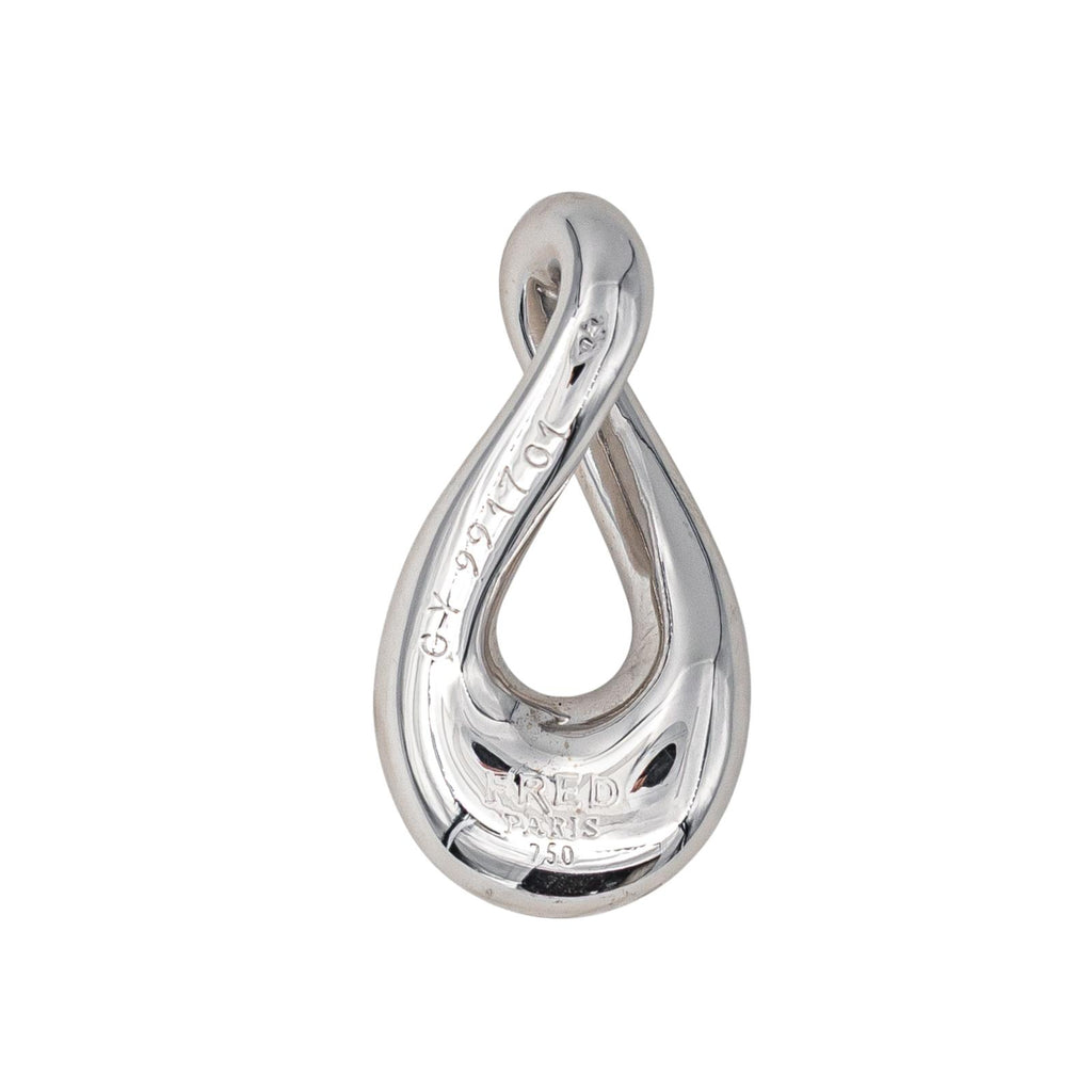 Pendentif signé de la Maison Tiffany and Co en or blanc 750 millièmes (18 carats), modèle Mouvementé, dimensions avec la bélière : 2,20 cm x 1,15 cm, poids total : 7,25 g, poinçon tête d’aigle,numéroté : GY991701, excellent état