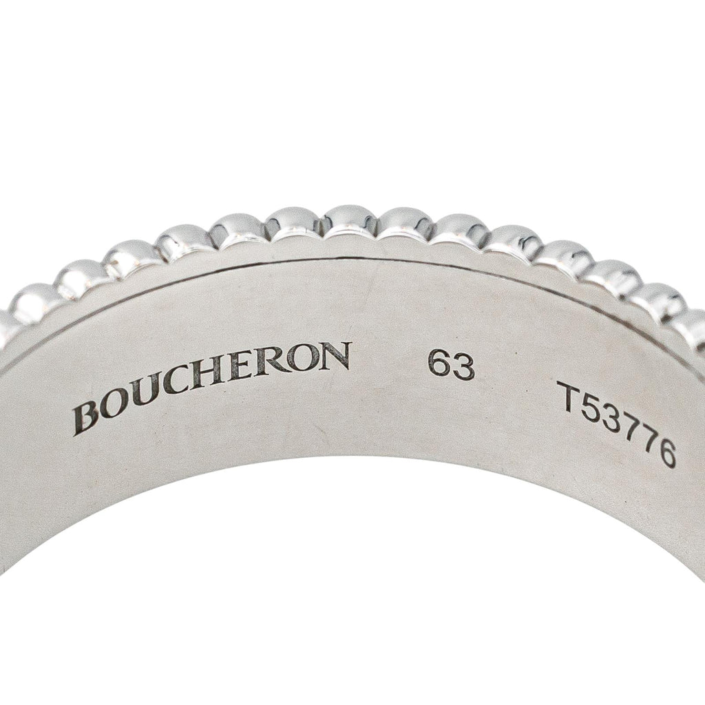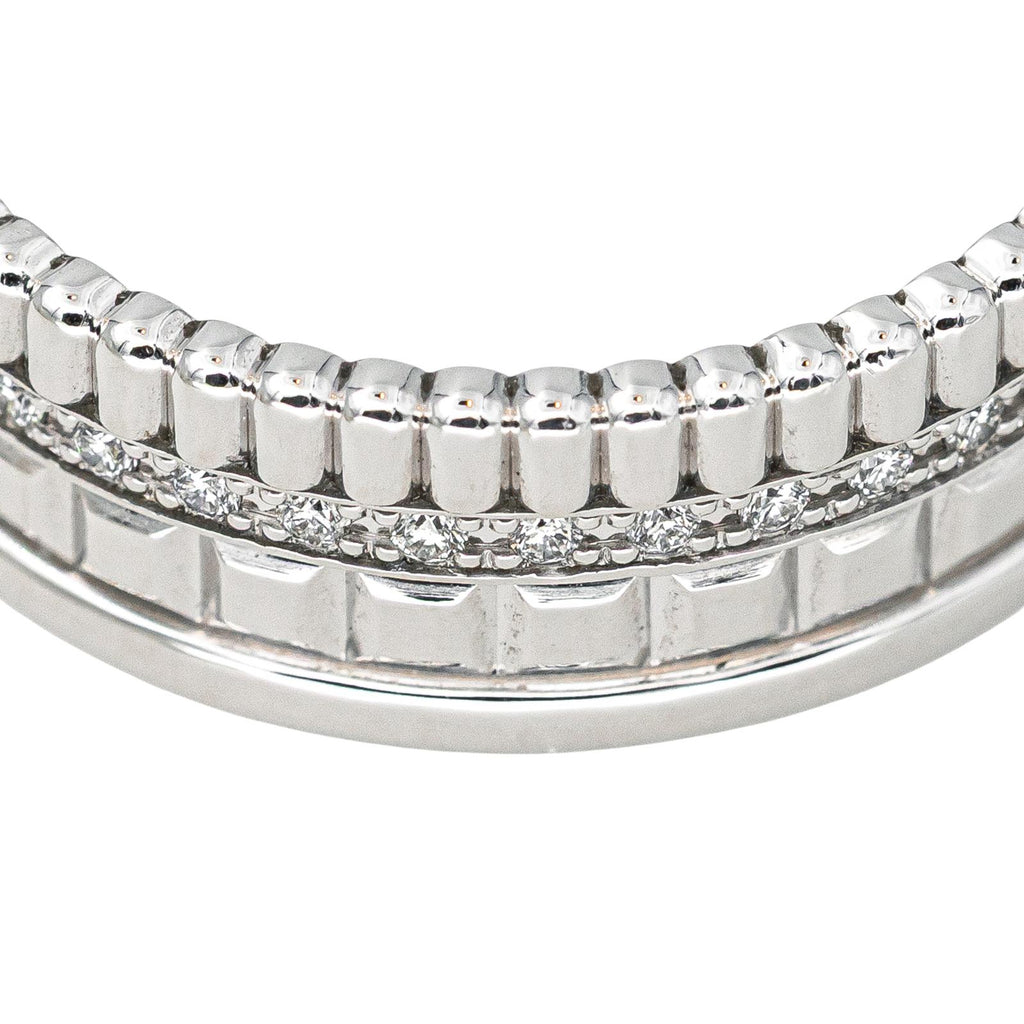 Bague signée de la Maison Boucheron en or blanc 750 millièmes (18 carats), modèle Quatre, sertie de 39 diamants taille brillant, environ G-VS, d'un poids total d'environ 0,25 ct (chaque diamant d'un poids d'environ 0,01 ct), largeur sur le dessus : 0,73 cm, tour de doigt : 63, poids total : 0,99 g, poinçon saint bernard, numérotée : T53776, excellent état