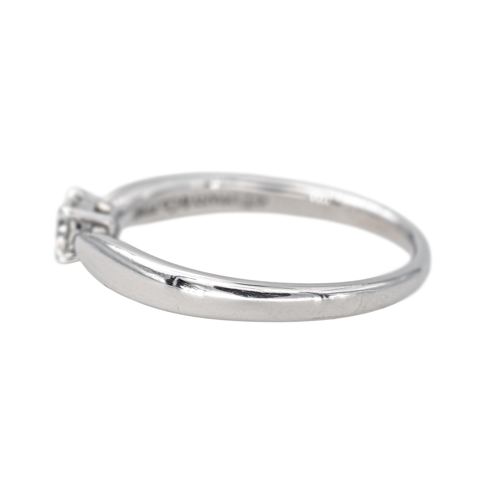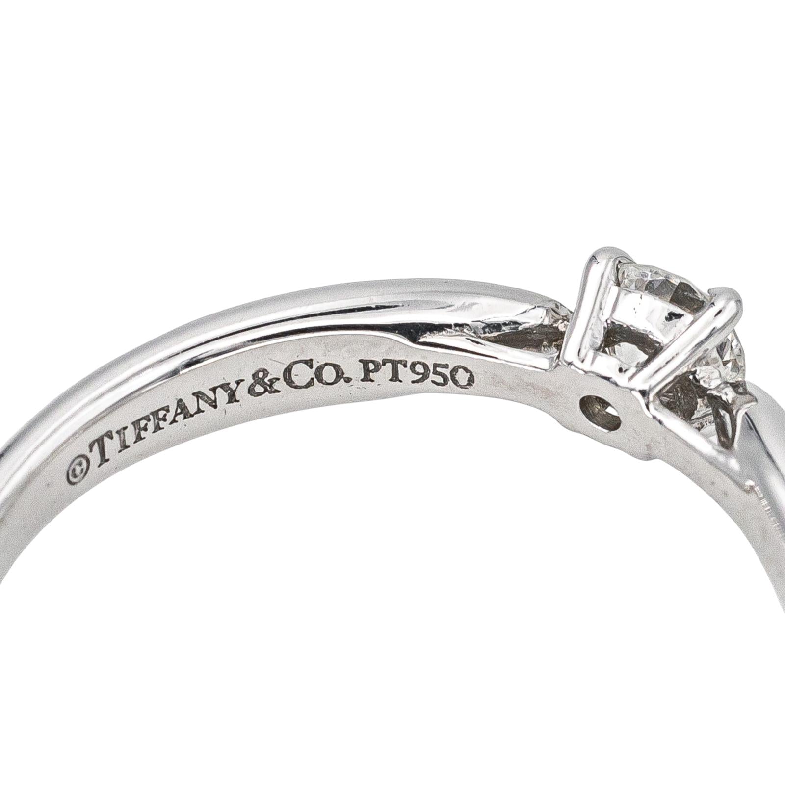 Bague solitaire signée de la Maison Tiffany and Co en platine 950 millièmes, modèle Harmony, sertie d’un diamant taille brillant environ G-VVS, d'un poids total d’environ 0,18 ct, largeur sur le dessus : 0,36 cm, tour de doigt : 51, poids total : 3,02 g, poinçon mascaron, vendue avec écrin d’origine, excellent état