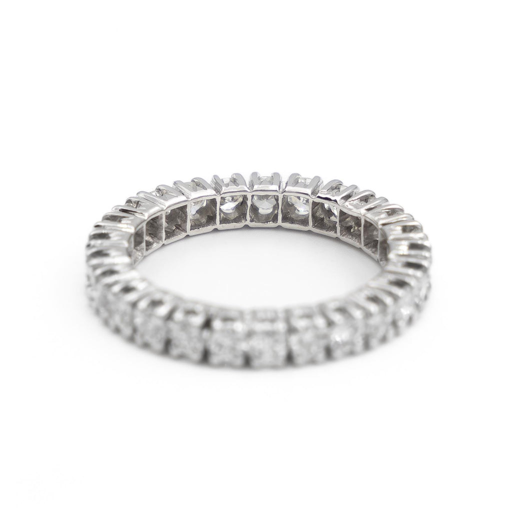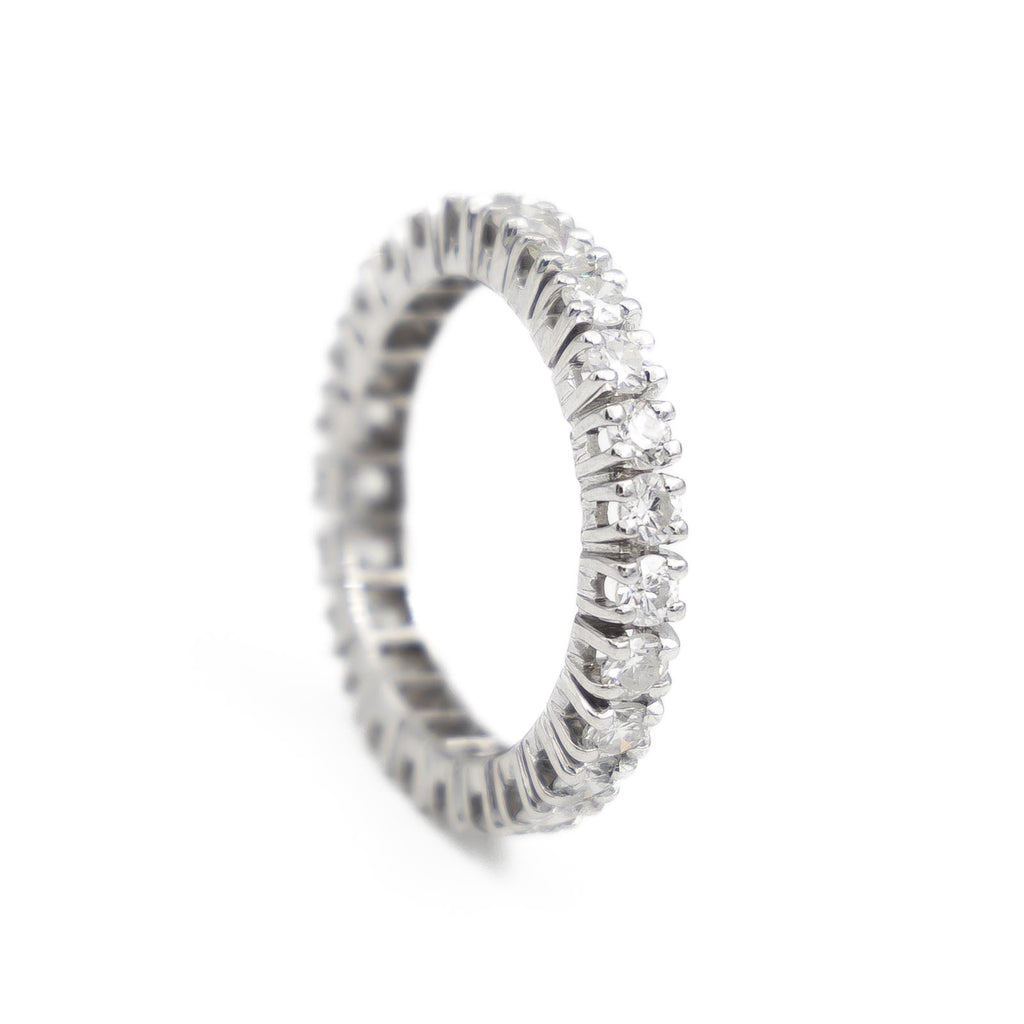 Alliance tour complet en or blanc 750 millièmes (18 carats), sertie de 25 diamants taille brillant environ G-VS, d'environ 0,06 ct chacun, poids total diamants: environ 1,5 cts, largeur sur le dessus: 0,34 cm, taille de doigt: 55,5, poids total: 4,41 g, poinçon tête d'aigle, excellent état