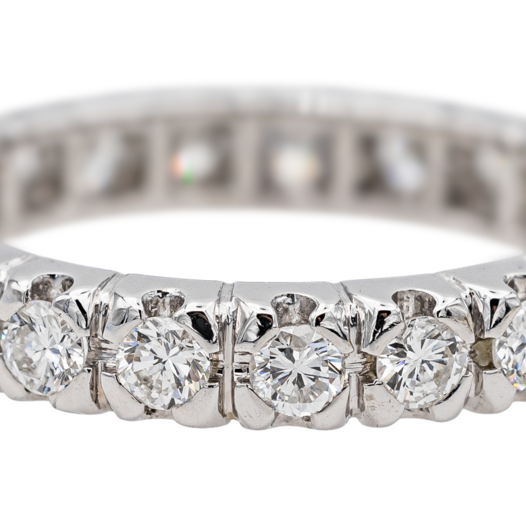 Alliance tour complet en or blanc 750 millièmes (18 carats), sertie de 21 diamants taille brillant environ G-SI, d'environ 0,05 ct chacun, poids total diamants : environ 1,05 cts, largeur sur le dessus : 0,33 cm, tour de doigt : 52, poids total : 4,26 g, poinçon tête d'aigle, excellent état