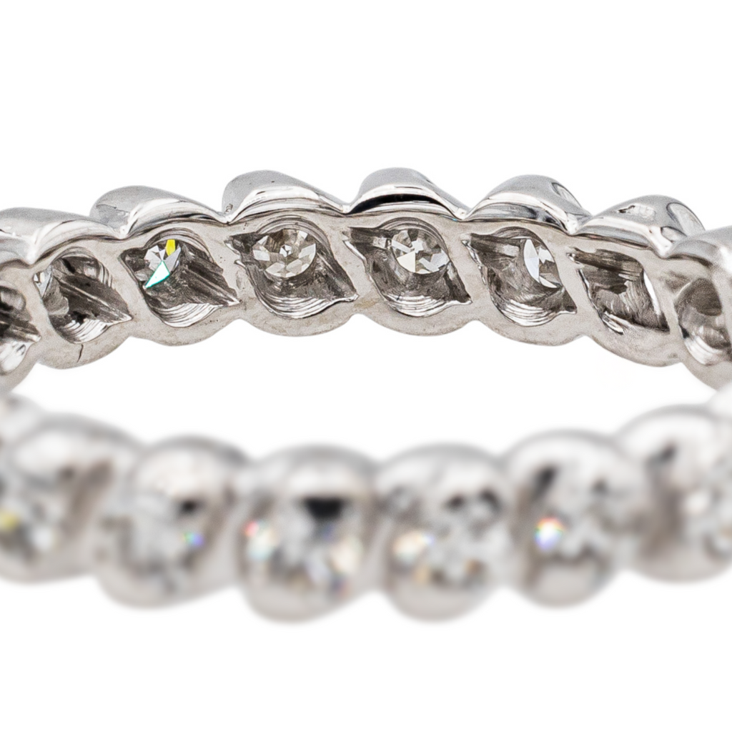 Alliance tour complet en or blanc 750 millièmes (18 carats), sertie de 22 diamants taille 8/8 environ G-SI, d'environ 0,04 ct chacun, poids total diamants : environ 0,88 ct, largeur sur le dessus : 0,31 cm, tour de doigt : 51, poids total : 3,24 g, poinçon tête d'aigle, excellent état