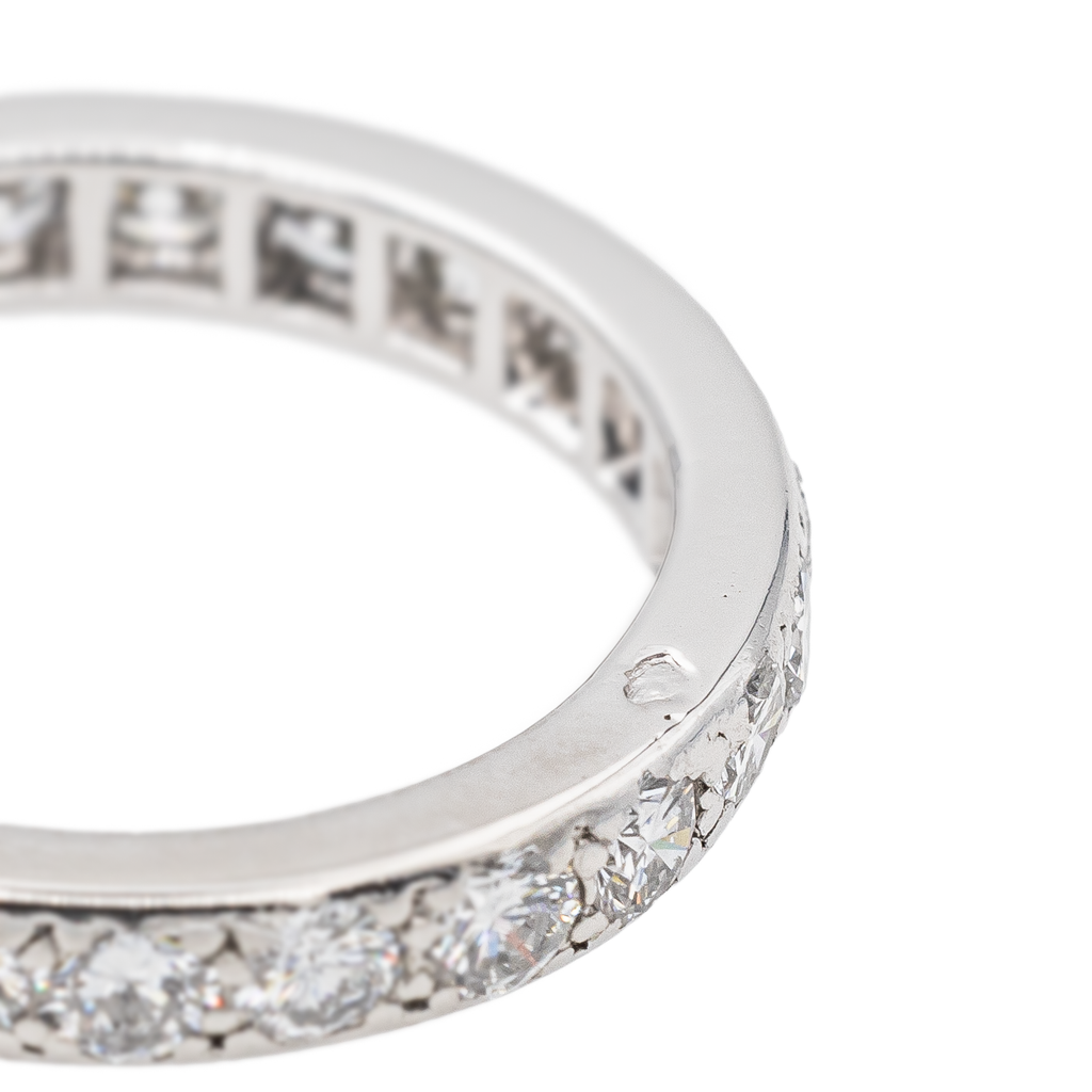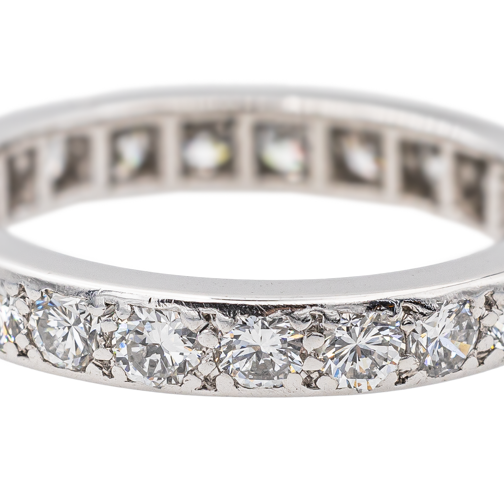 Alliance tour complet en platine 950 millièmes, sertie de 23 diamants taille brillant environ G-VS, d'environ 0,05 ct chacun, poids total diamants : environ 1,15 cts, largeur sur le dessus : 0,32 cm, tour de doigt : 52, poids total : 4,61 g, poinçon tête de chien, excellent état