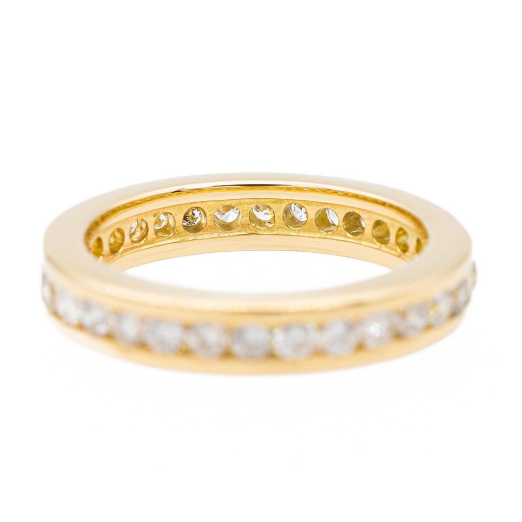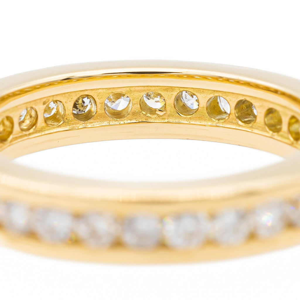 Alliance tour complet en or jaune 750 millièmes (18 carats), sertie de 32 diamants taille brillant environ H/SI, d'environ 0,05 ct chacun, poids total diamants: environ 1,60 cts, largeur sur le dessus: 0,39 cm, tour de doigt: 54, poids total: 6,14 g, poinçon tête d'aigle, excellent état