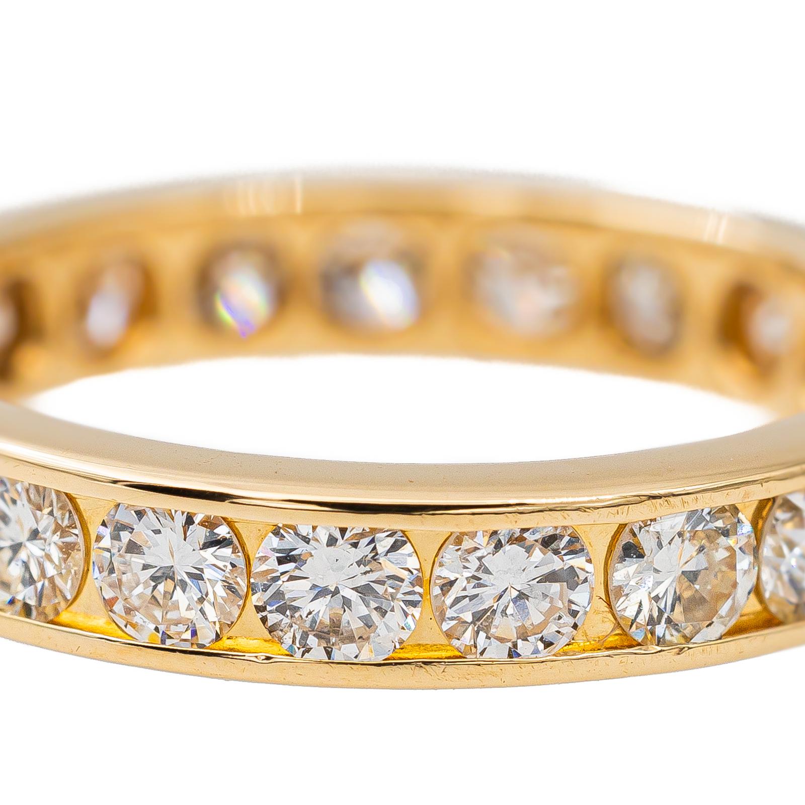 Alliance tour complet en or jaune 750 millièmes (18 carats), sertie de 21 diamants taille brillant estimés G/SI, d'environ 0,12 ct chacun, poids total diamants: environ 2,52 cts, largeur sur le dessus: 0,36 cm, tour de doigt: 54, poids total: 3,92 g, poinçon tête d'aigle, excellent état