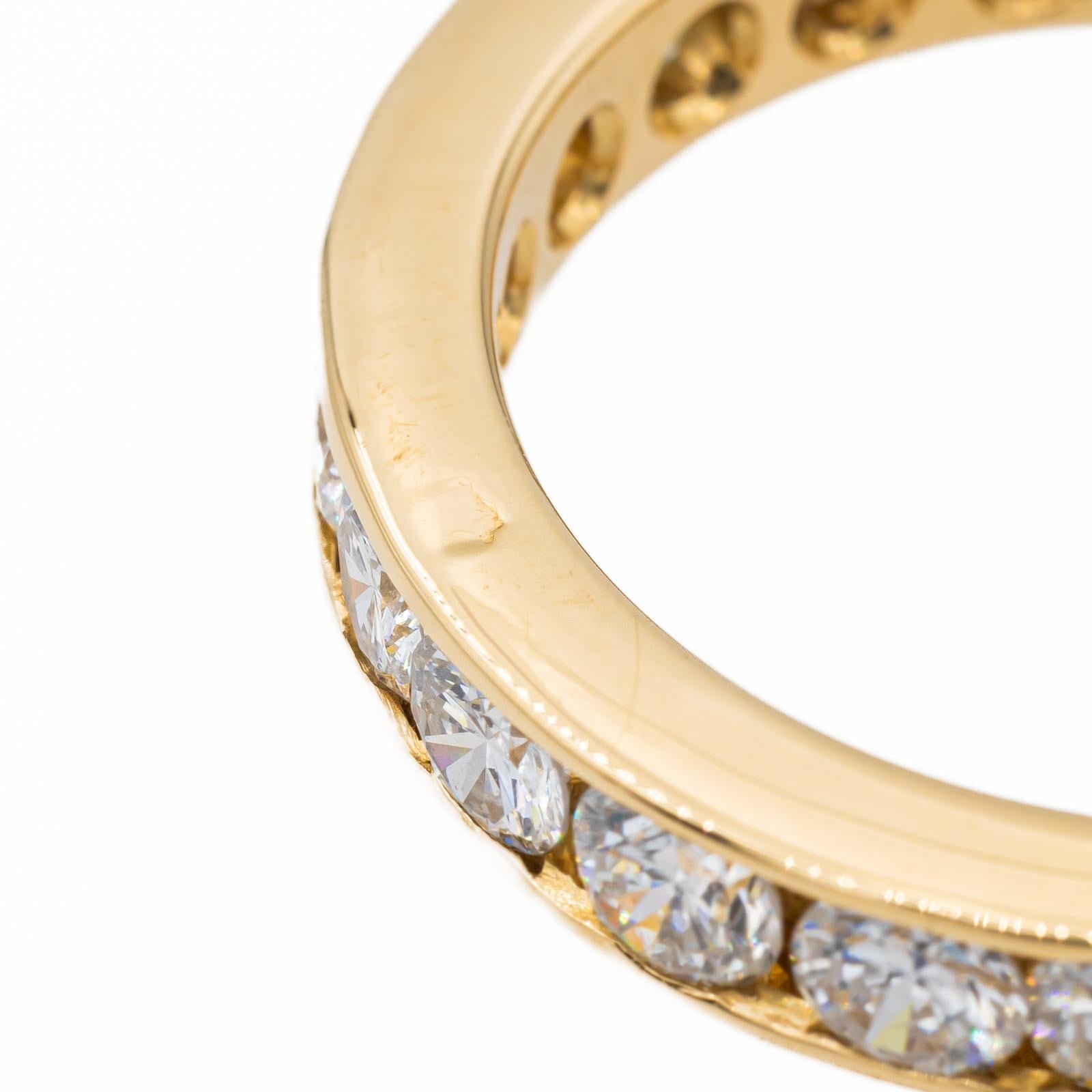 Alliance tour complet en or jaune 750 millièmes (18 carats), sertie de 22 diamants taille brillant estimés G/VS, d'environ 0,11 ct chacun, poids total diamants: environ 2,42 ct, largeur sur le dessus: 0,35 cm, tour de doigt: 35,5, poids total: 3,93 g, poinçon tête d'aigle, excellent état