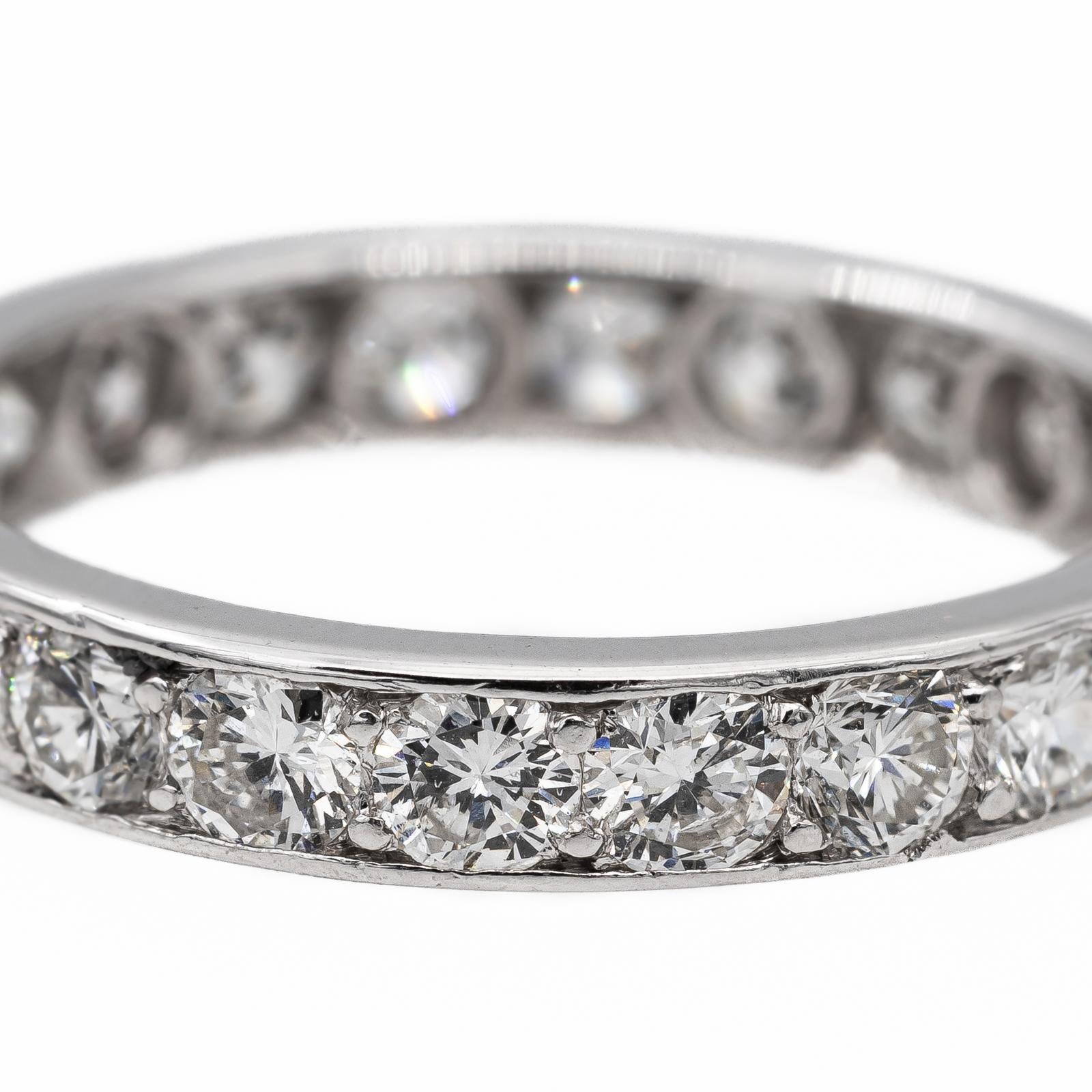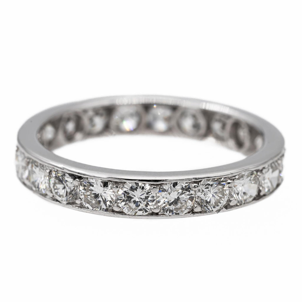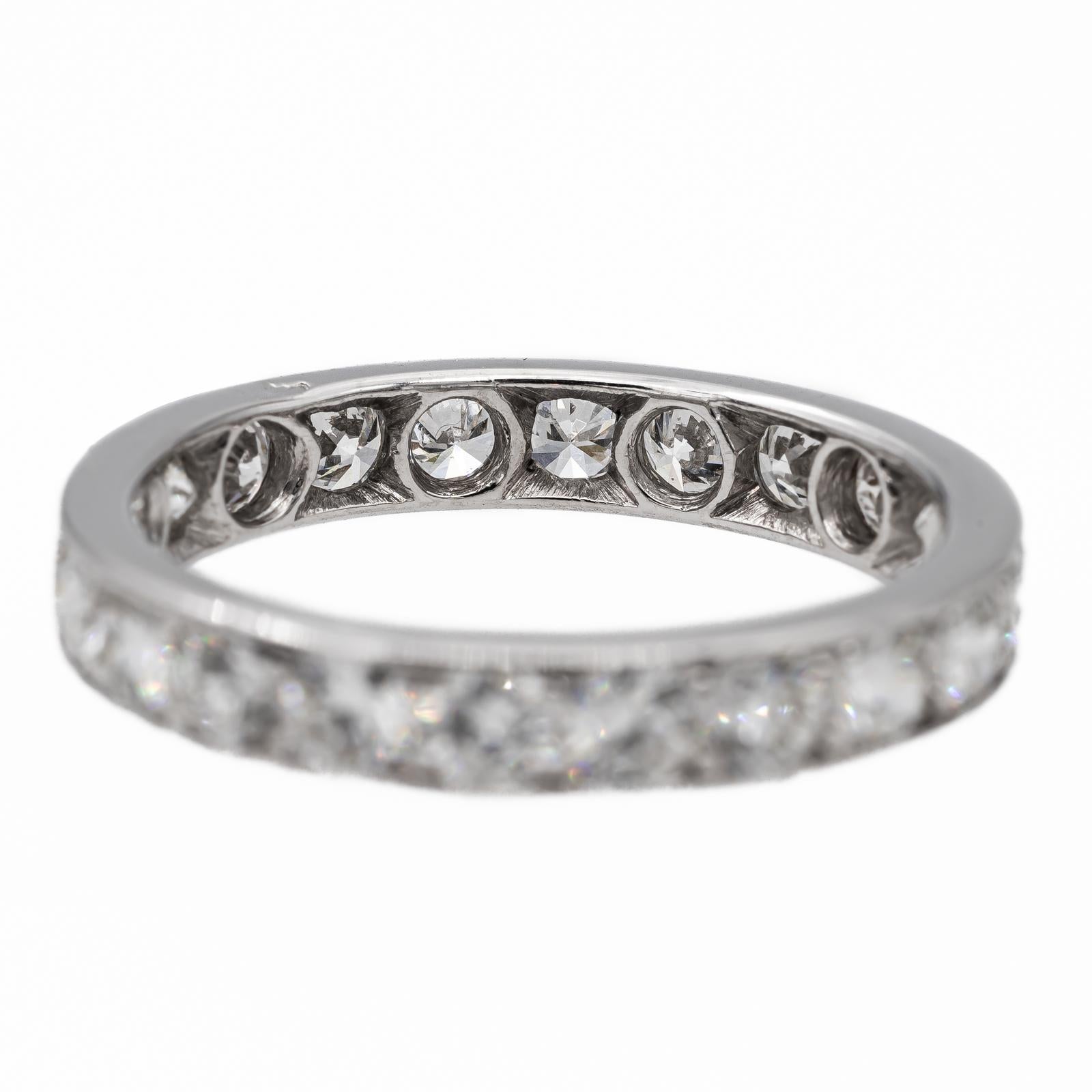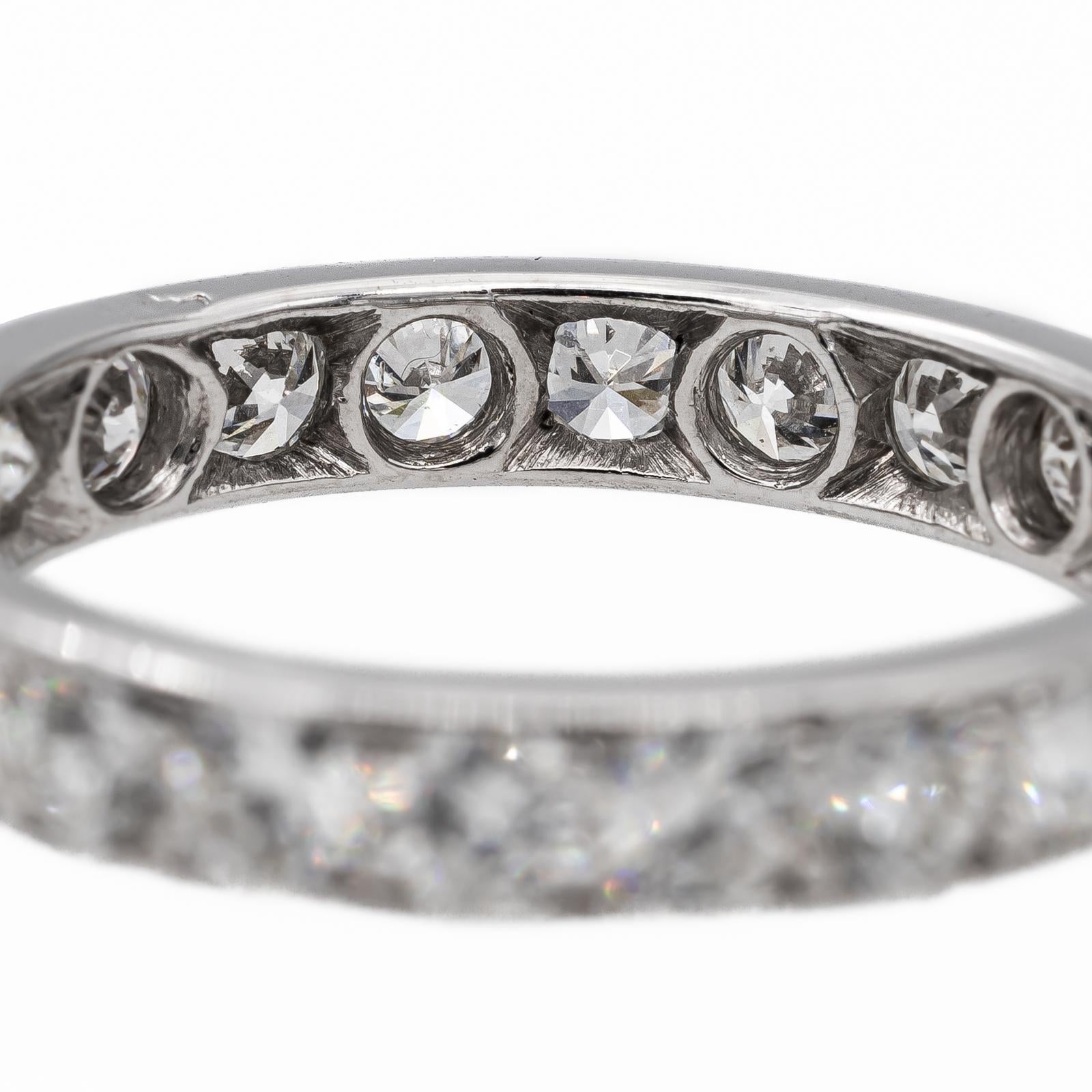 Alliance tour complet en platine 950 millièmes, sertie de 22 diamants taille brillant estimés H/SI, d'environ 0,06 ct chacun, poids total diamants: environ 1,32 ct, largeur sur le dessus: 0,33 cm, tour de doigt: 52,5, poids total: 3,18 g, poinçon tête de chien, excellent état