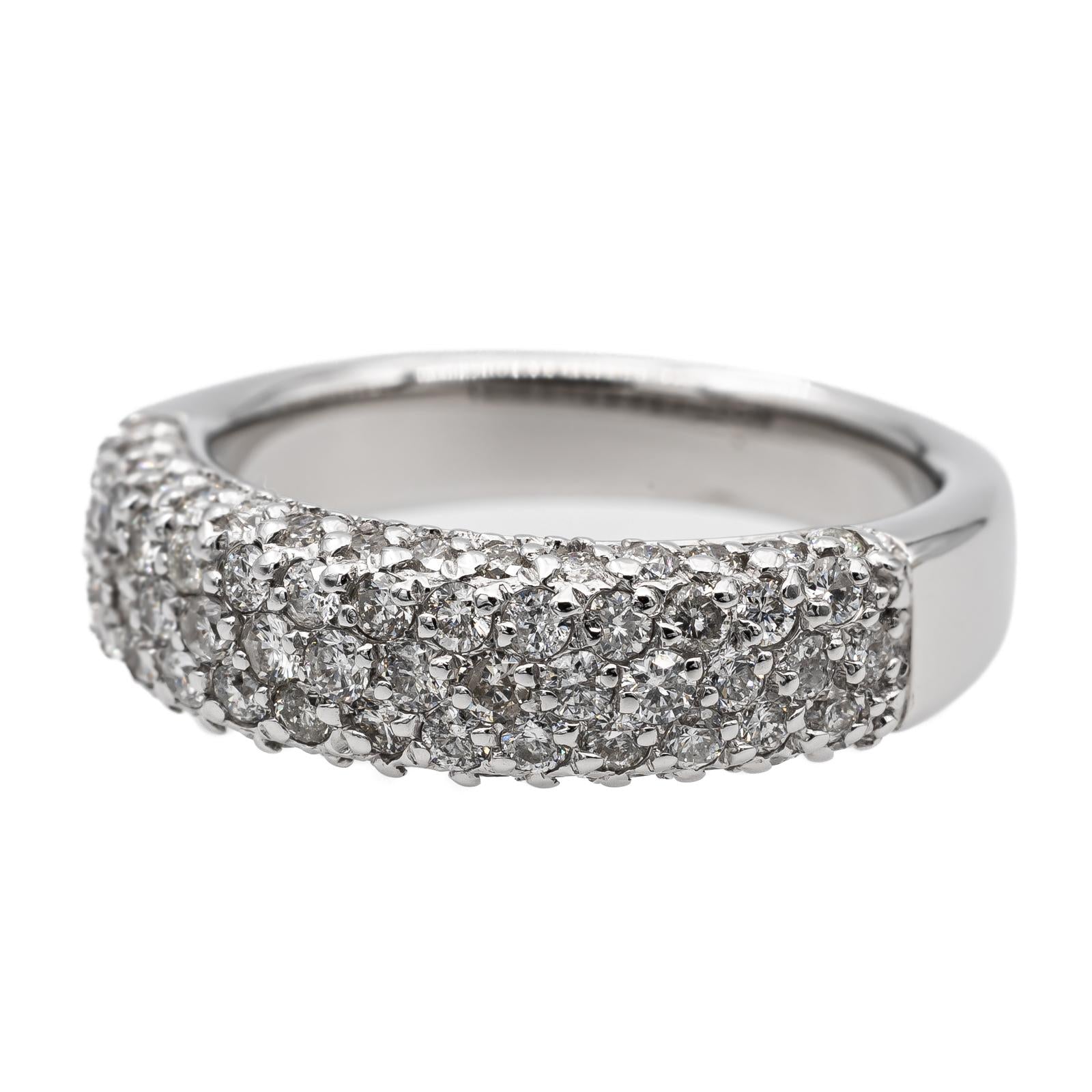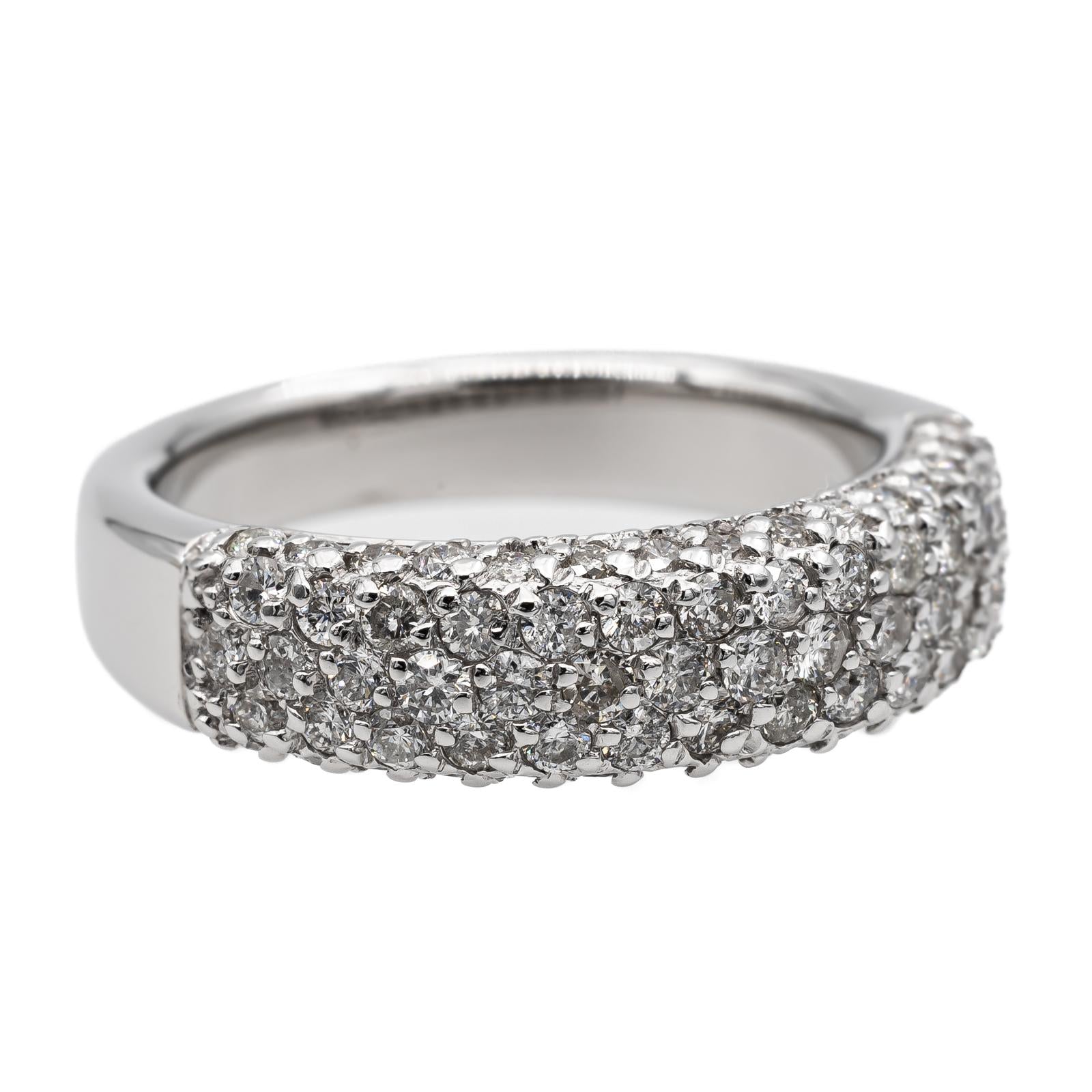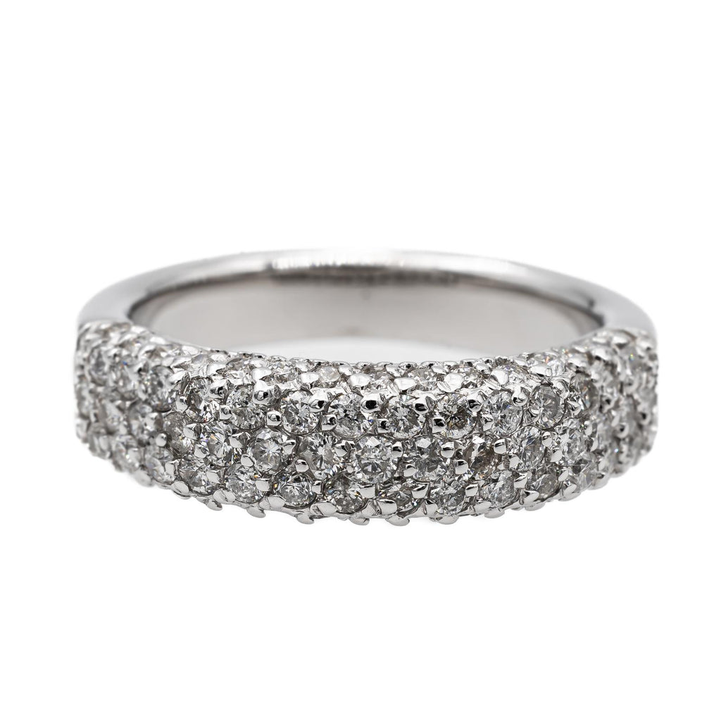 Bague en or blanc 750 millièmes (18 carats) pavée de diamants, 73 diamants taille brillant, environ H-SI, d'un poids total d'environ 0,73 ct, (chaque diamant d'un poids d'environ 0,01 ct), largeur sur le dessus: 0,56 cm, tour de doigt: 53, poids total: 6,29 g, poinçon hibou, excellent état