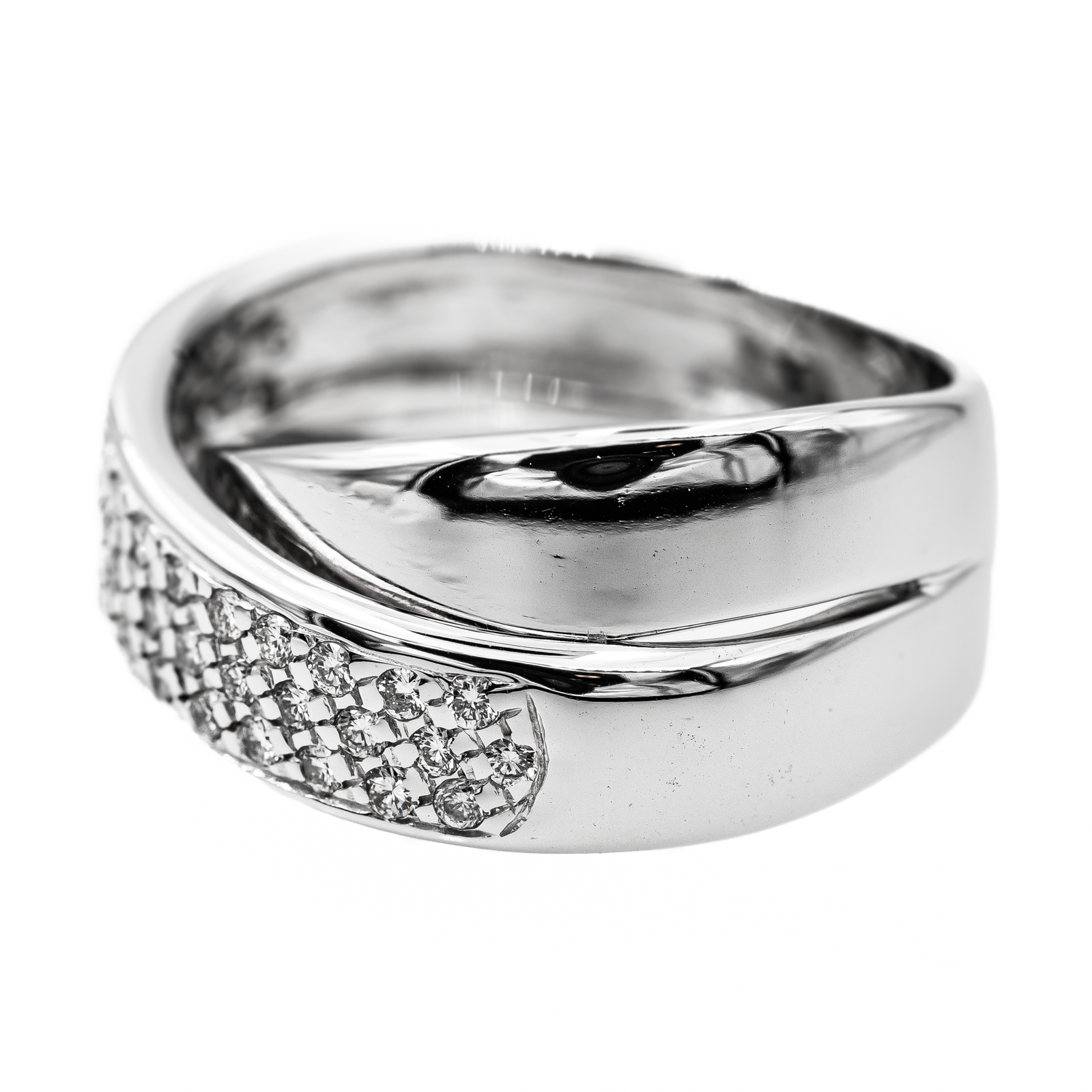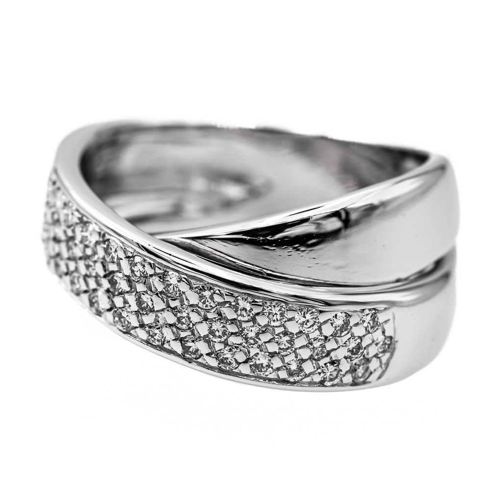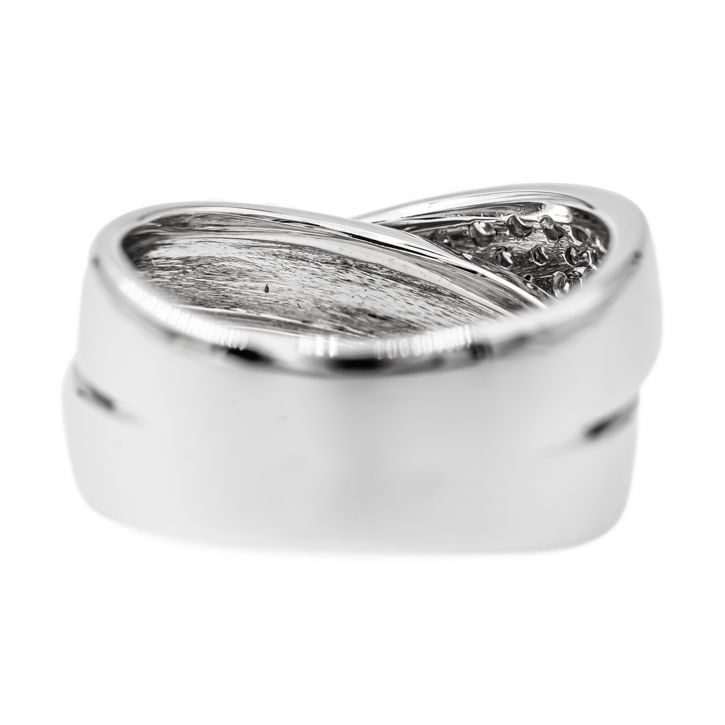 Bague en or blanc 750 millièmes (18 carats) pavée de diamants, 42 diamants taille brillant, environ H-SI, d'un poids total d'environ 0,21 ct, (chaque diamant d'un poids d'environ 0,005 ct), largeur sur le dessus: 0,99 cm, tour de doigt: 53, poids total: 8,61 g, poinçon tête d'aigle, excellent état