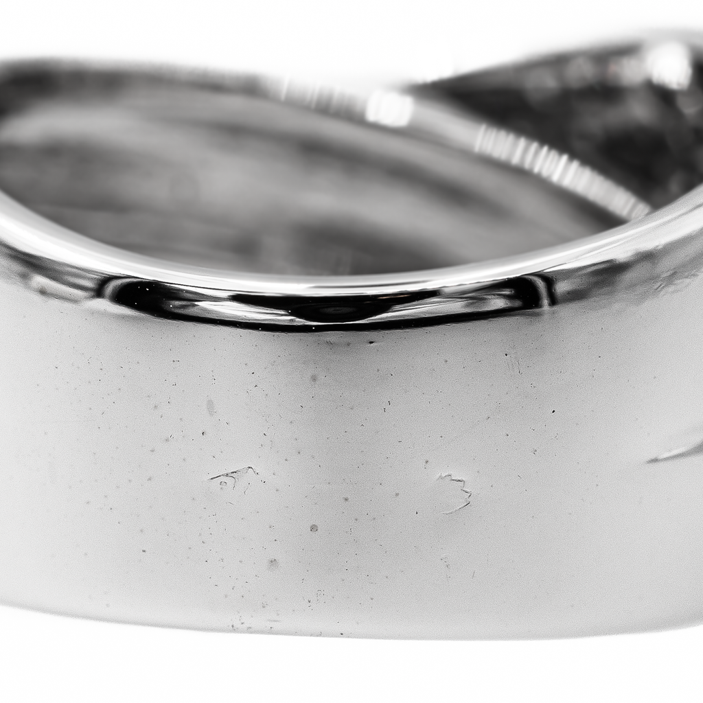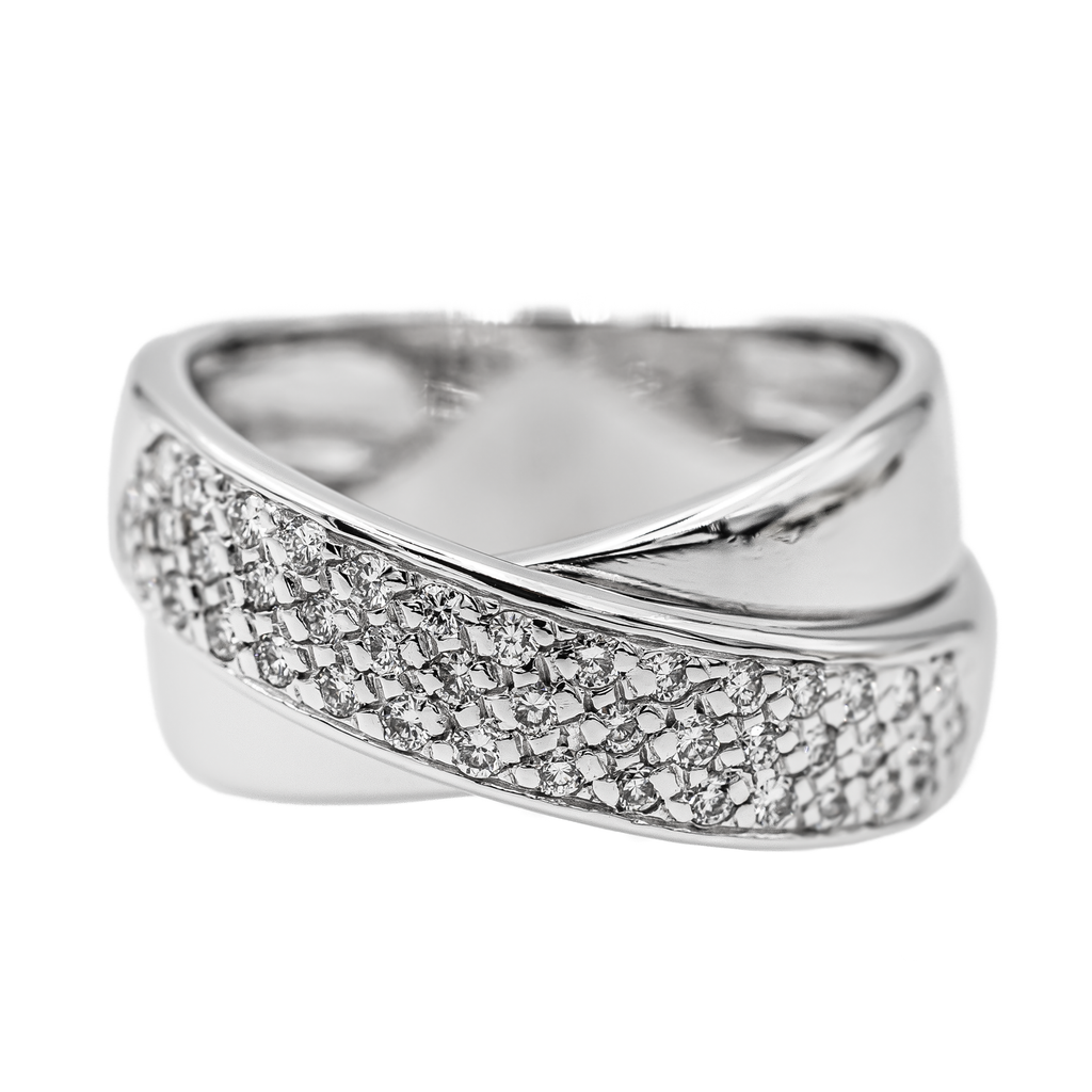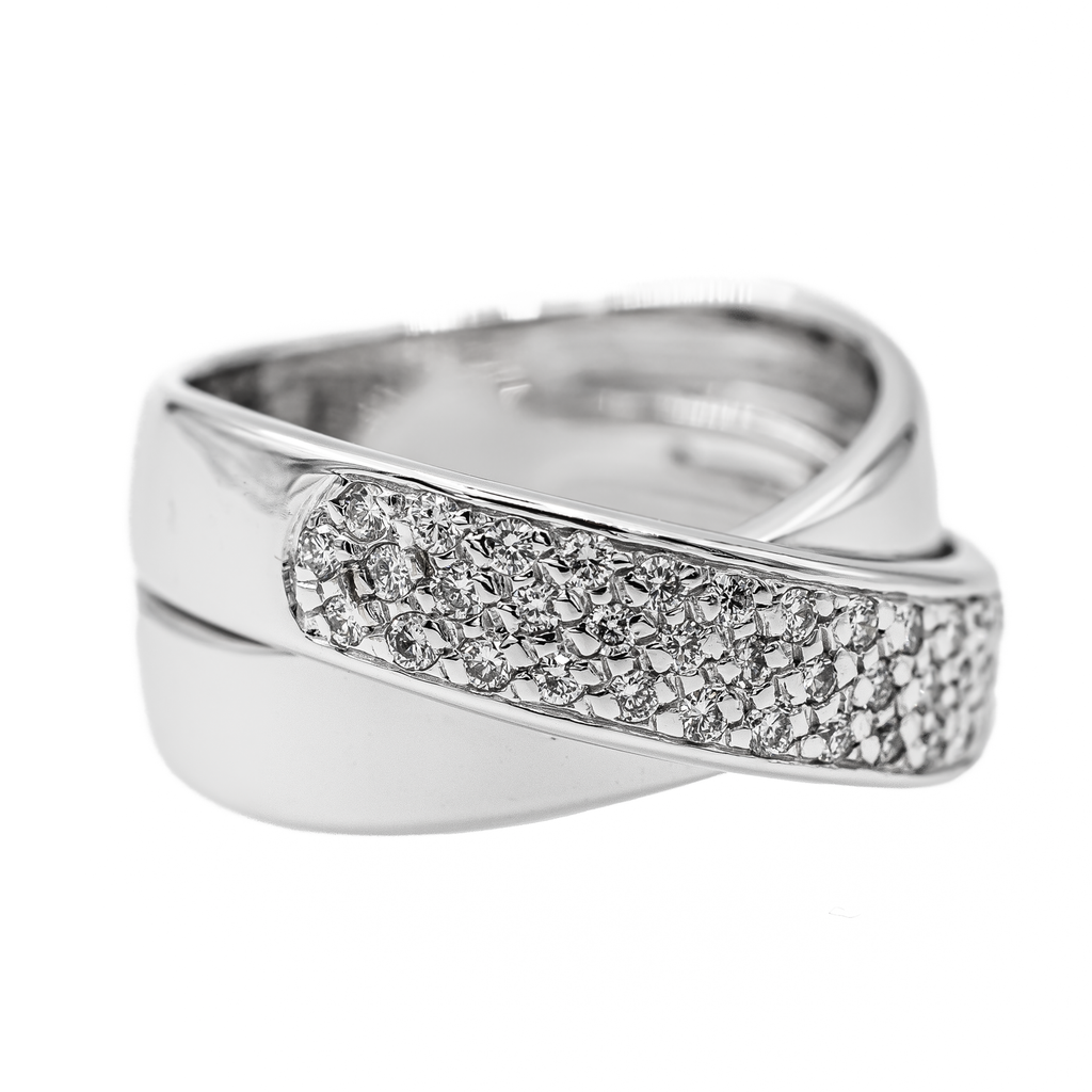 Bague en or blanc 750 millièmes (18 carats) pavée de diamants, 42 diamants taille brillant, environ H-SI, d'un poids total d'environ 0,21 ct, (chaque diamant d'un poids d'environ 0,005 ct), largeur sur le dessus: 0,99 cm, tour de doigt: 53, poids total: 8,61 g, poinçon tête d'aigle, excellent état