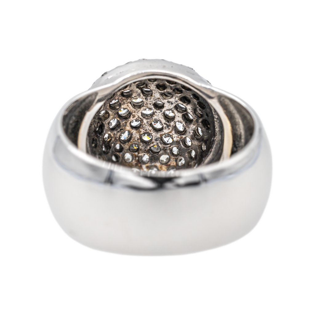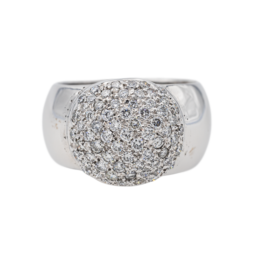 Bague en or blanc 750 millièmes (18 carats), sertie de 66 diamants taille brillant, environ H-VS, d'un poids total d'environ 0,86 ct, (chaque diamant d'un poids d'environ 0,013 ct), largeur sur le dessus : 1,30 cm, tour de doigt : 53, poids total : 7,71 g, poinçon hibou, excellent état