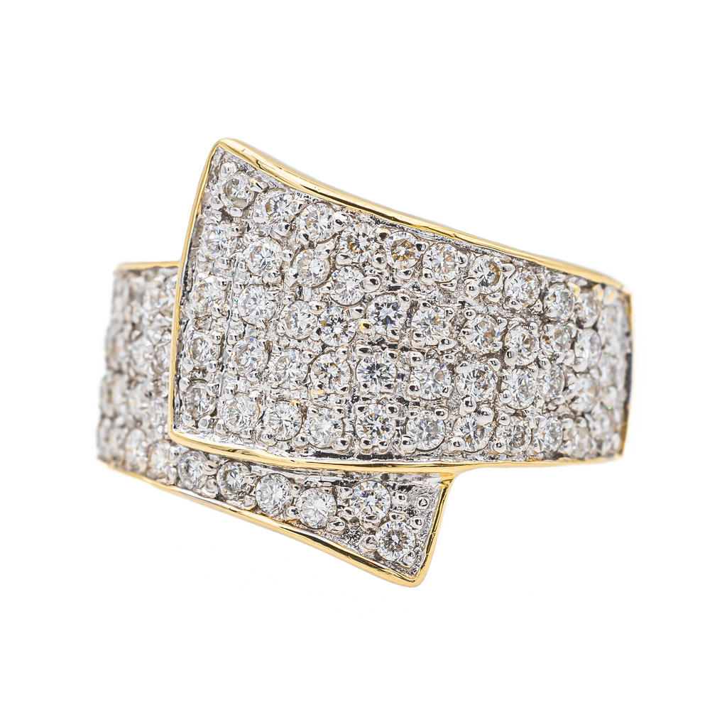 Bague en or jaune et or blanc 750 millièmes (18 carats), pavée de 81 diamants, taille brillant, environ G-SI, d'un poids total d'environ 0,81 ct, (chaque diamant d'un poids d'environ 0,01 ct), largeur sur le dessus : 1,61 cm, tour de doigt : 53, poids total : 6,93 g, poinçon tête d'aigle, excellent état