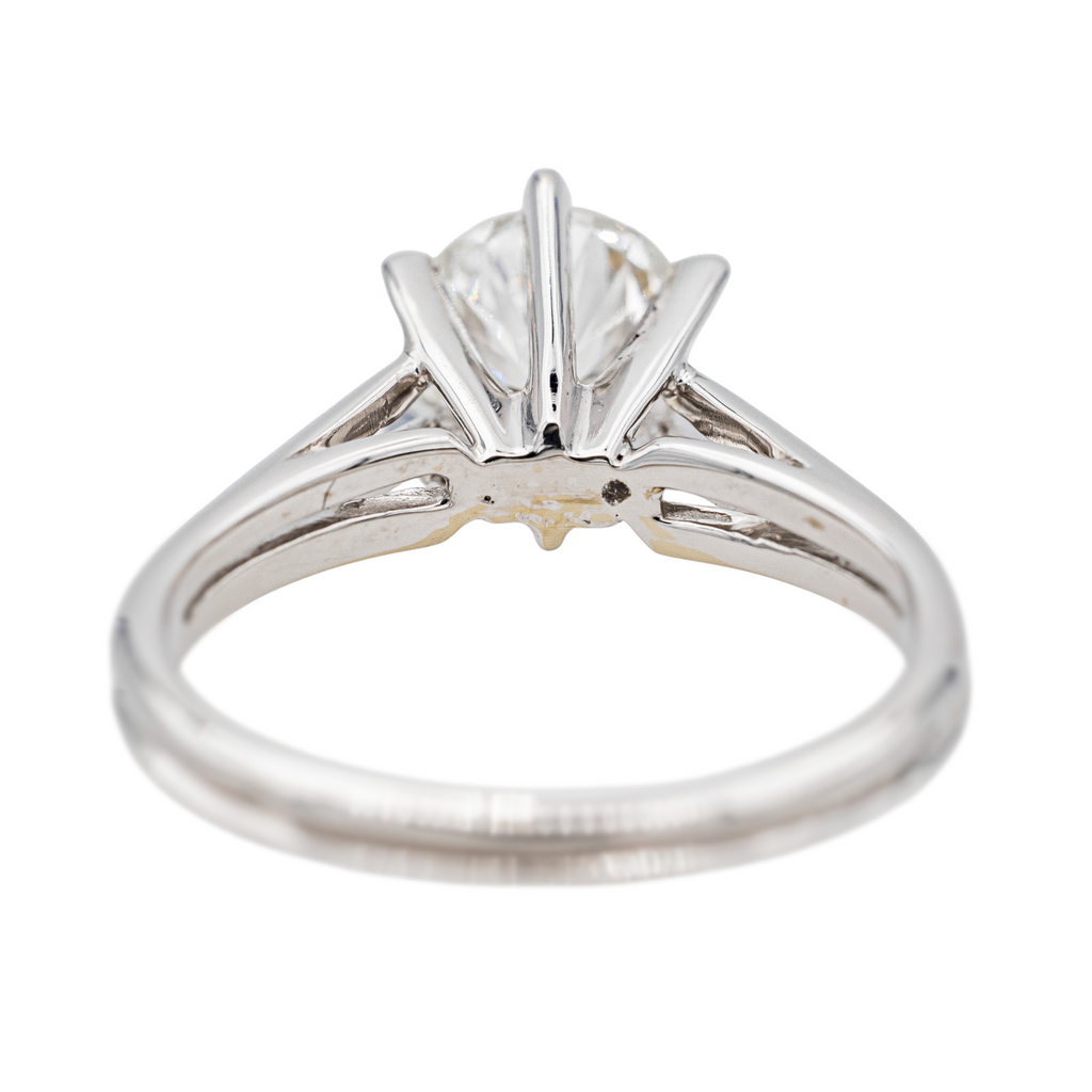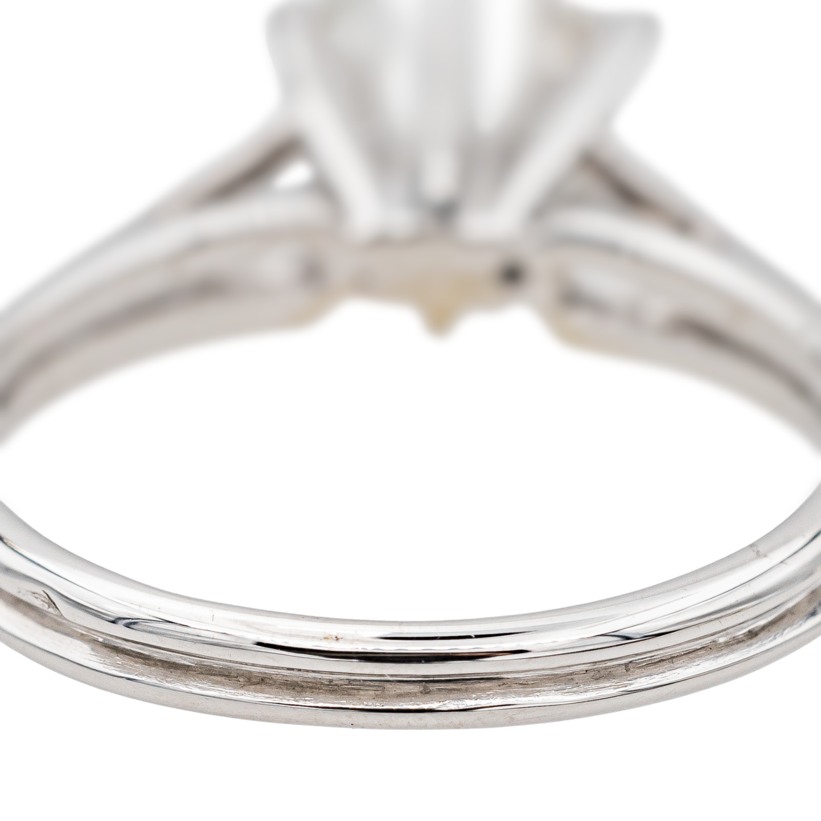 Bague solitaire en or blanc 750 millièmes (18 carats), sertie d’un diamant taille brillant environ F-SI, d'un poids total d’environ 1,04 cts, largeur sur le dessus : 0,84 cm, tour de doigt : 47,5, poids total : 3,43 g, poinçon tête d'aigle, excellent état